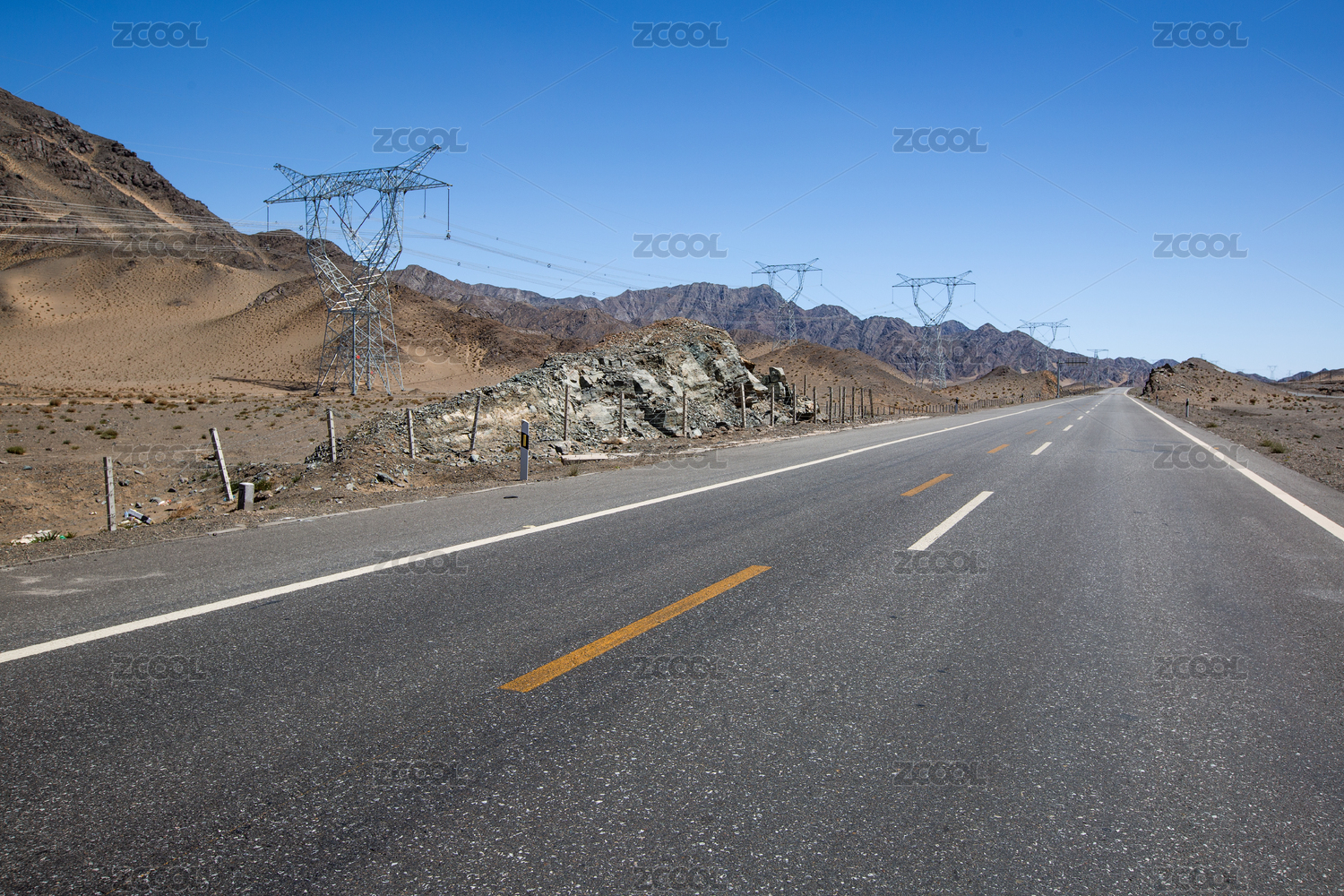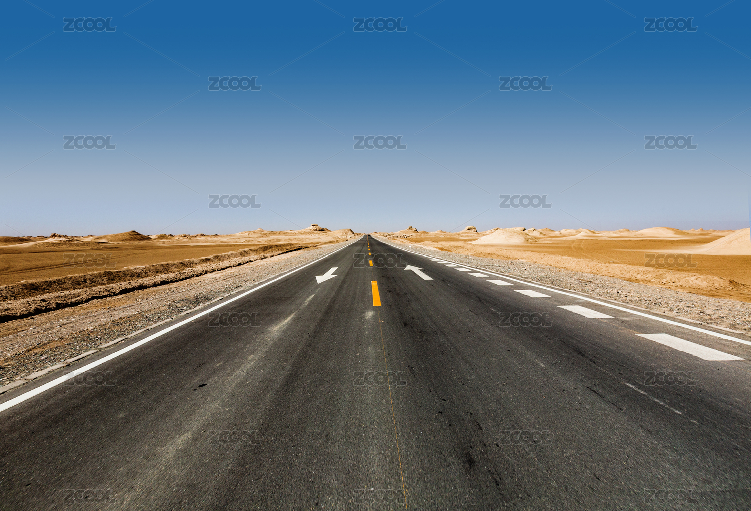 萬里無云的中國西部戈壁灘行車道