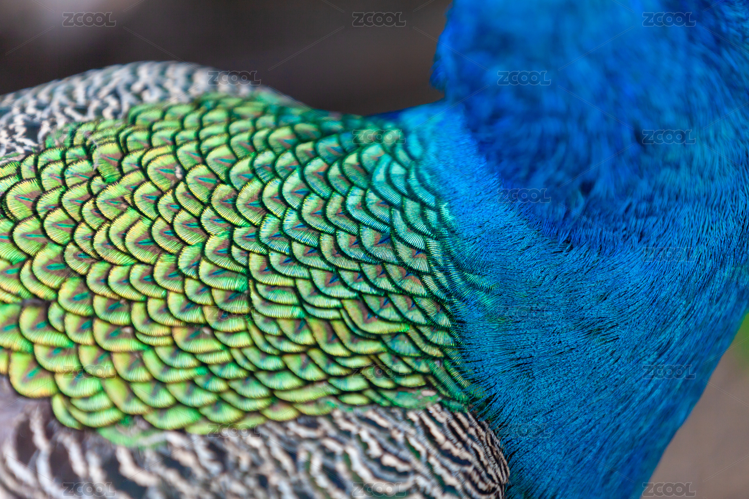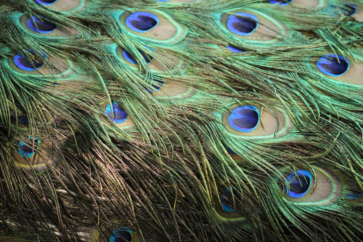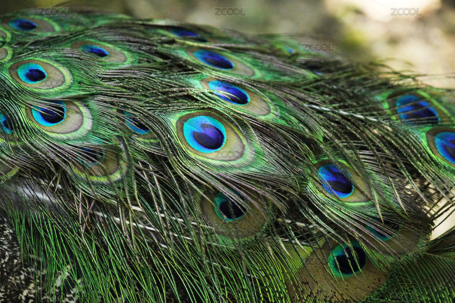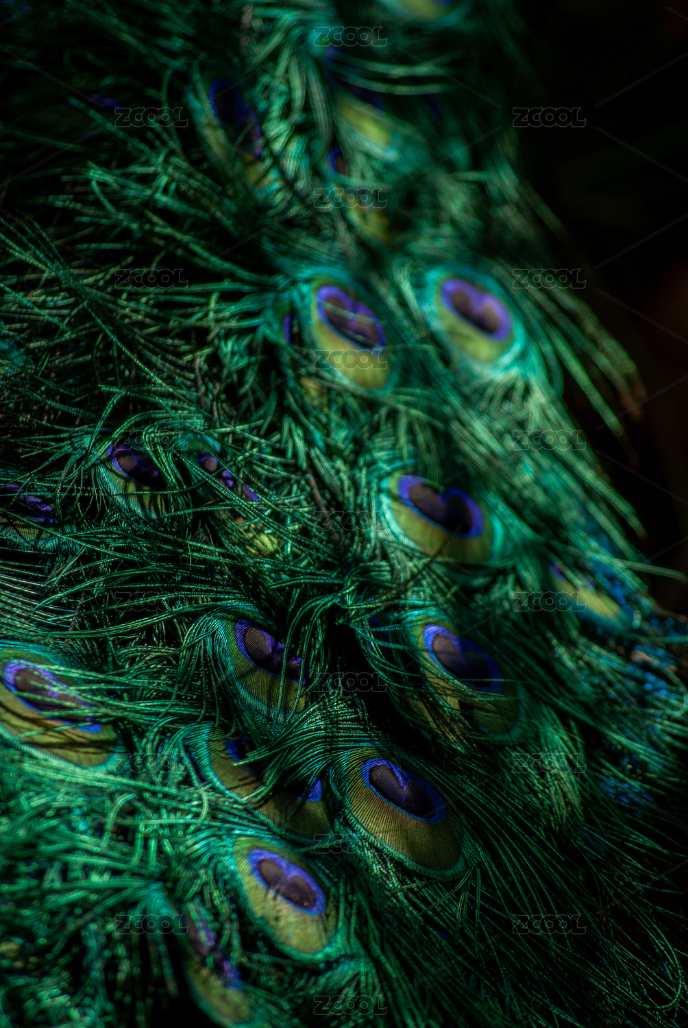 藍(lán)綠色孔雀羽毛局部花紋特寫