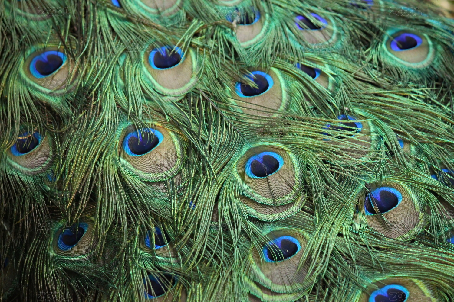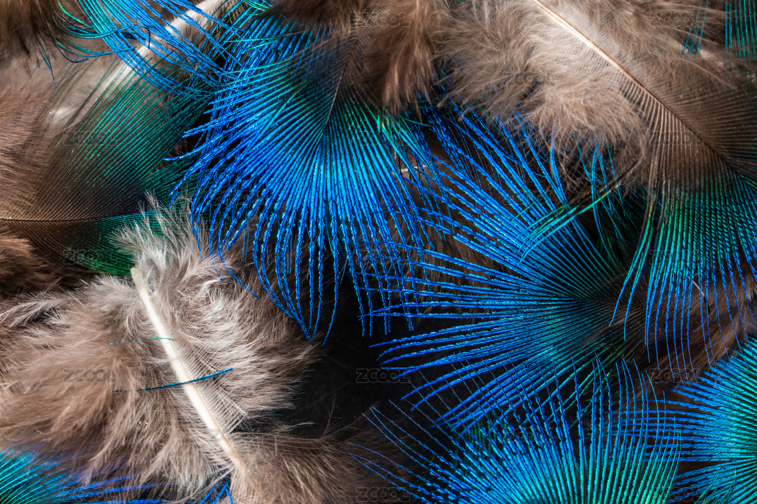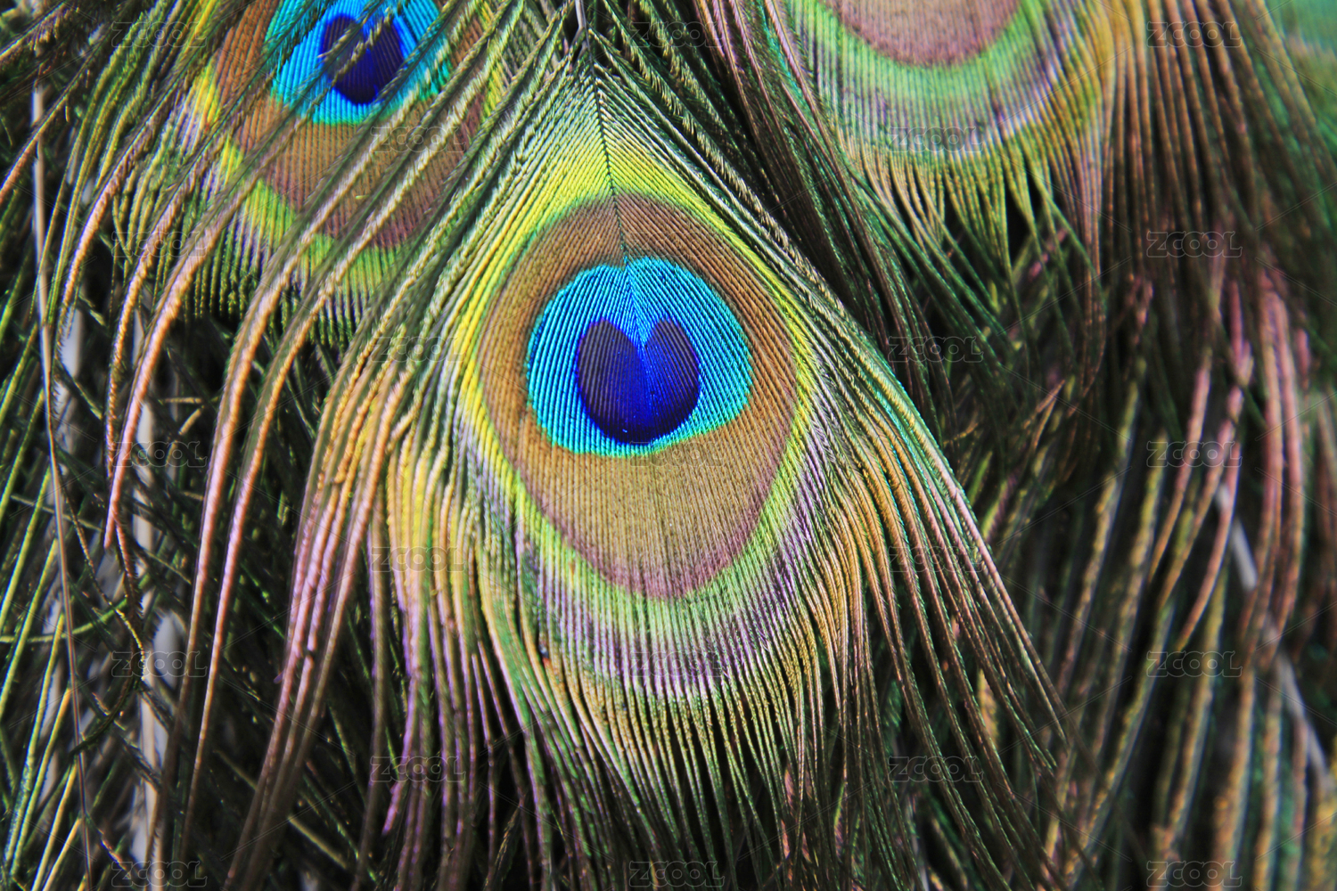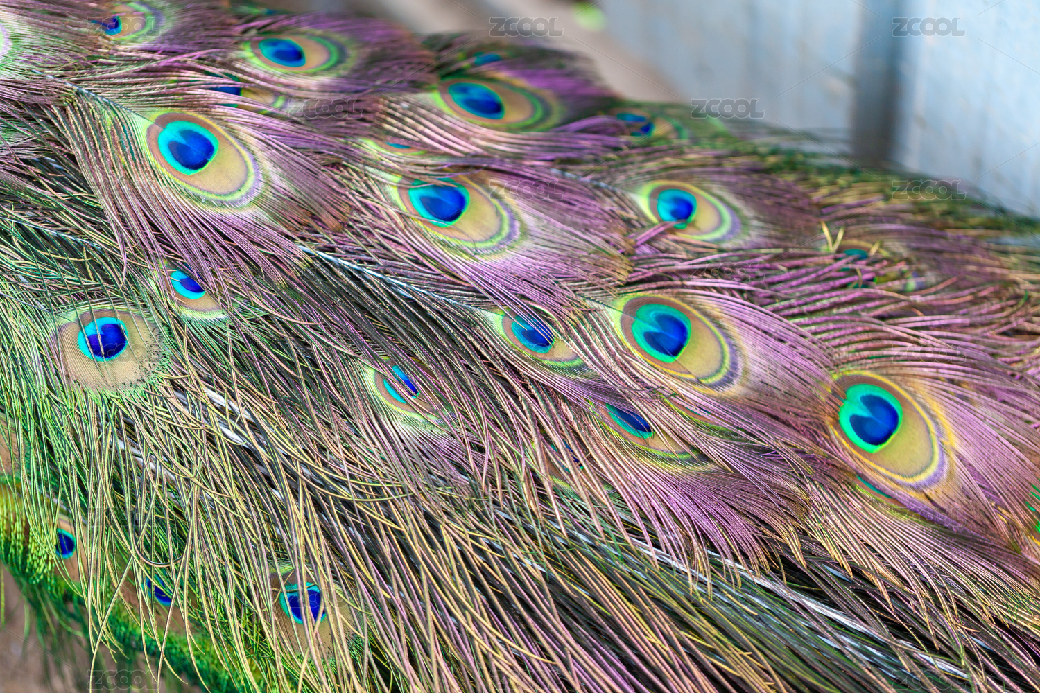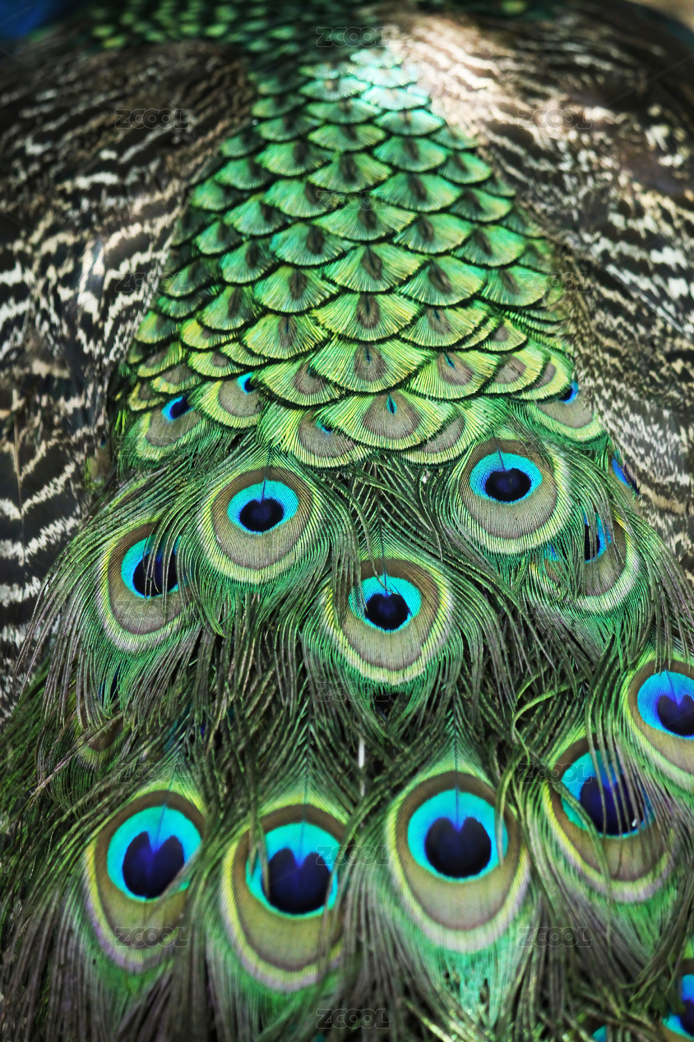 藍(lán)綠色孔雀羽毛局部花紋特寫