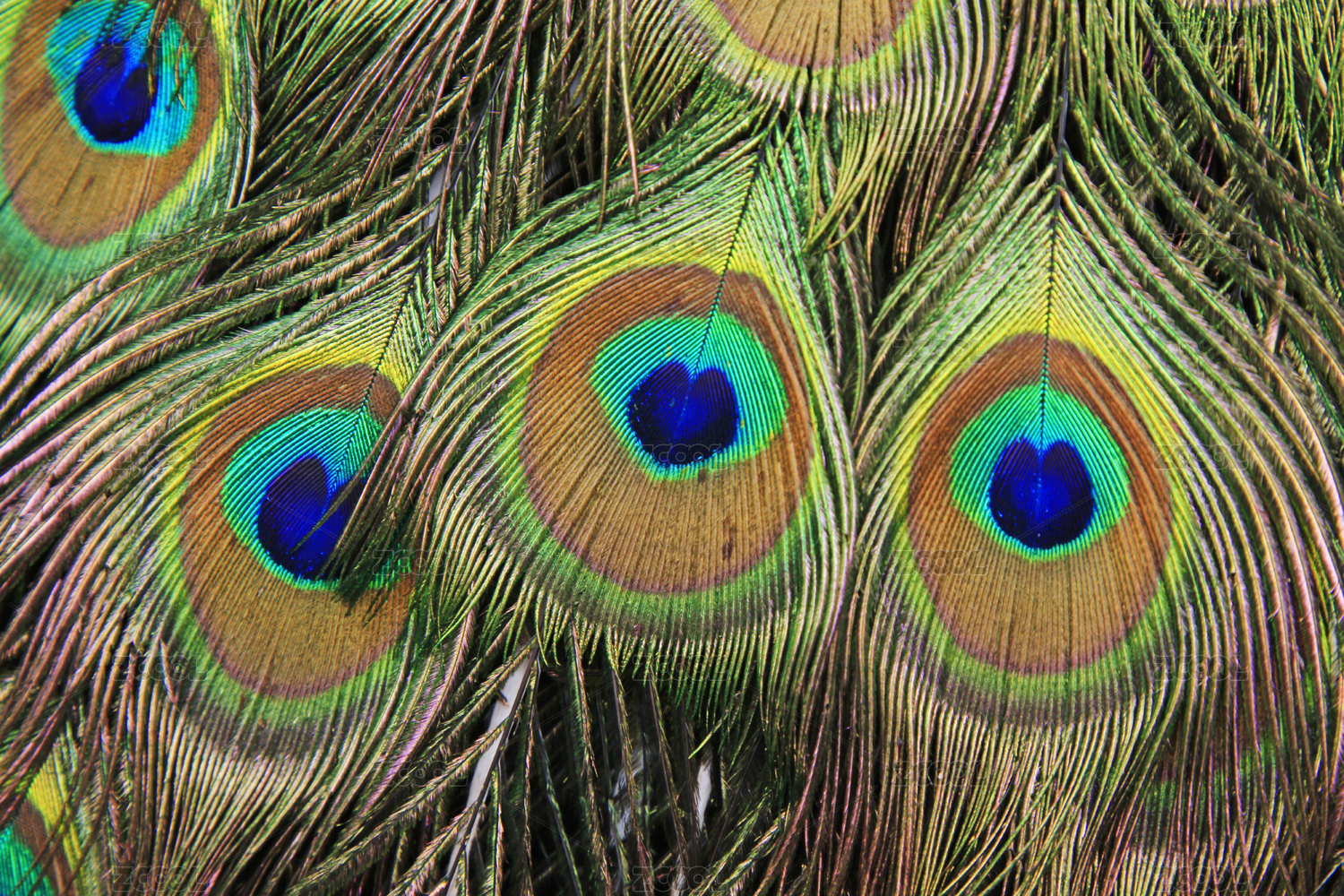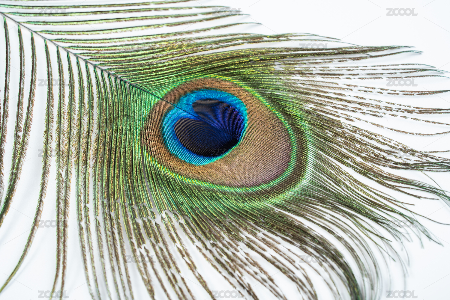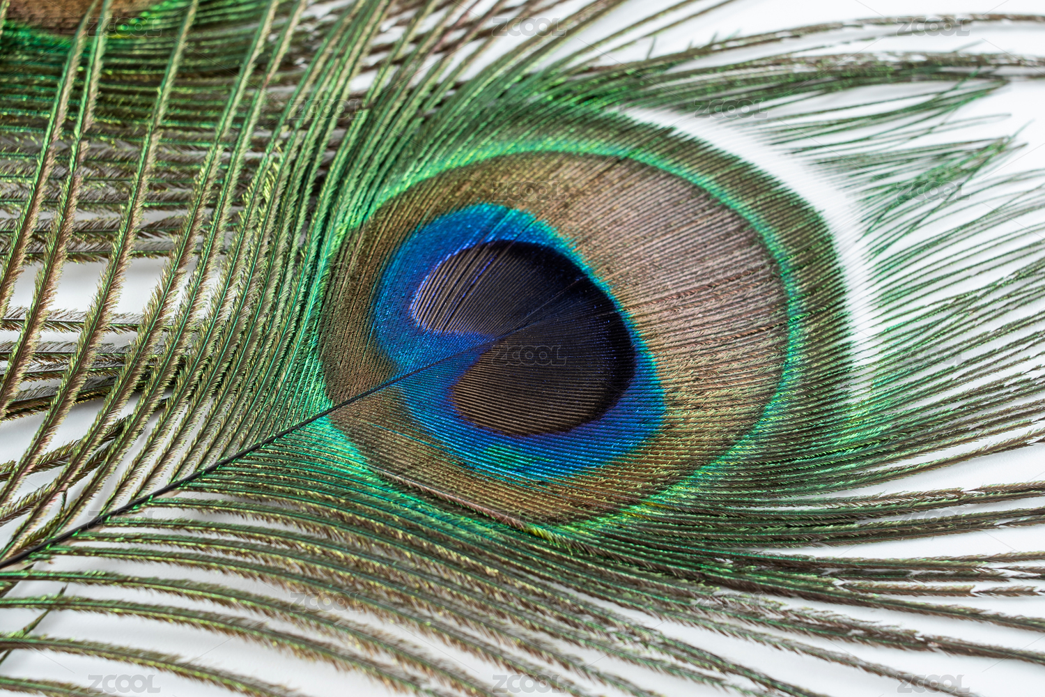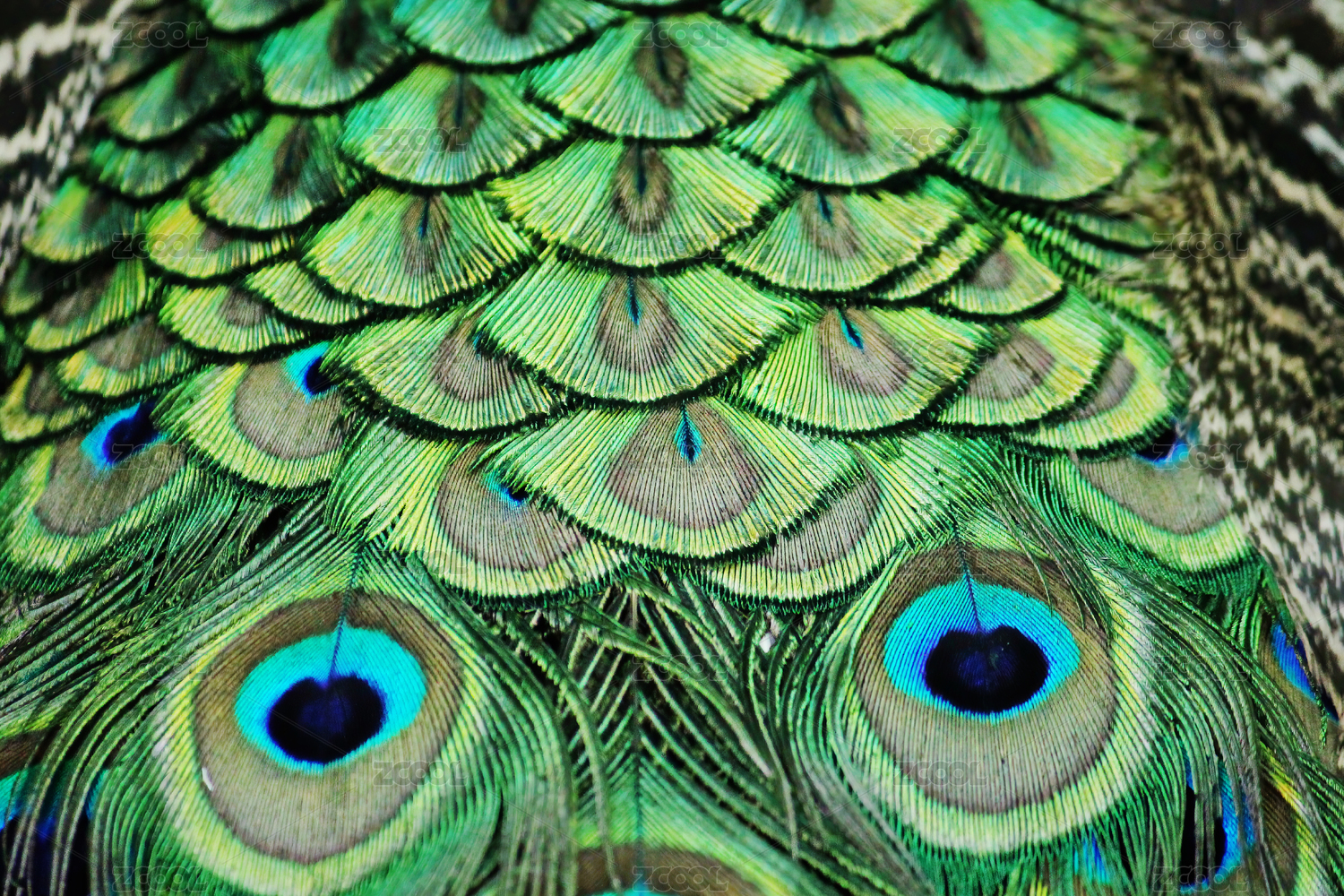 藍(lán)綠色孔雀羽毛局部花紋特寫