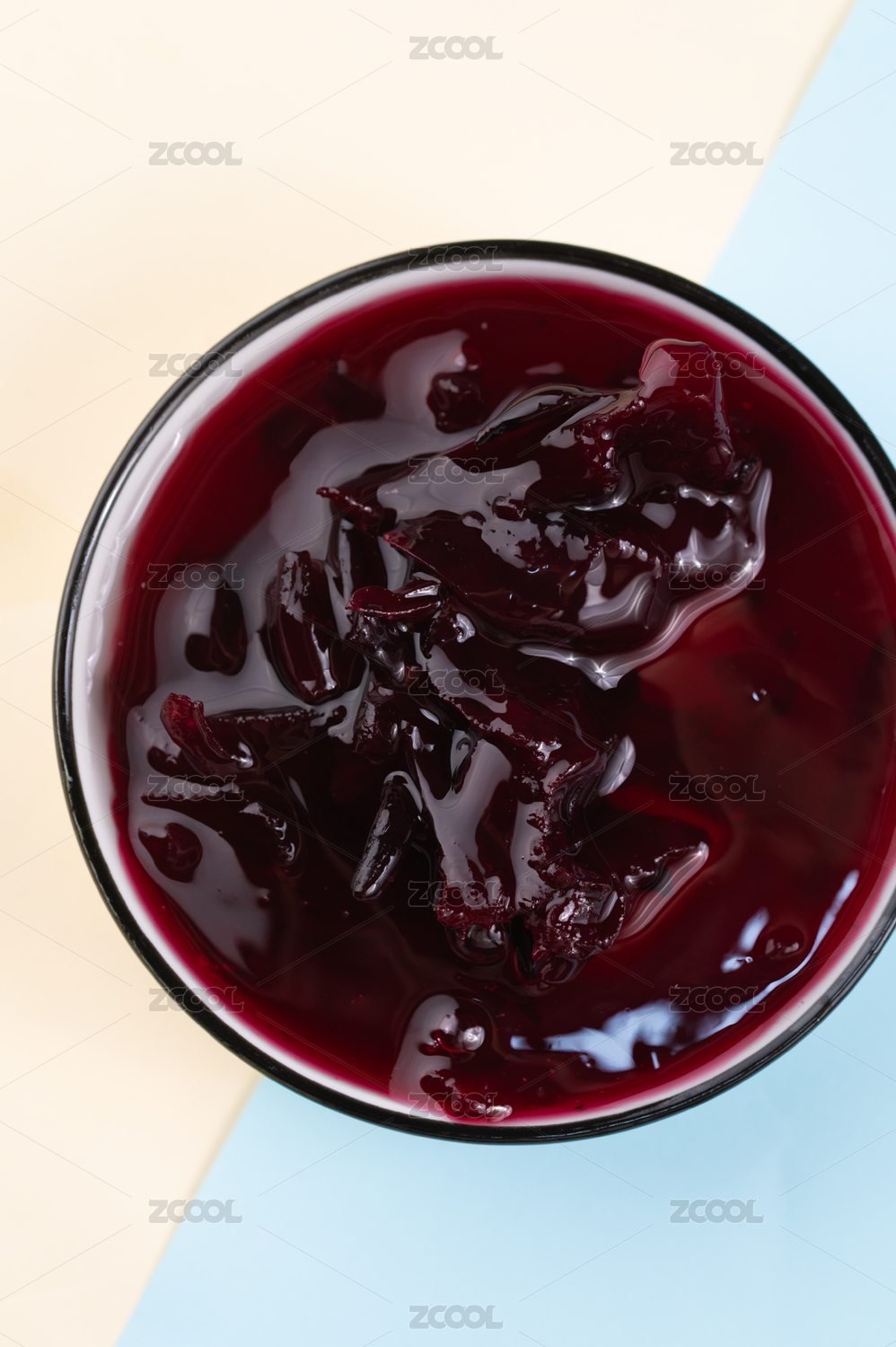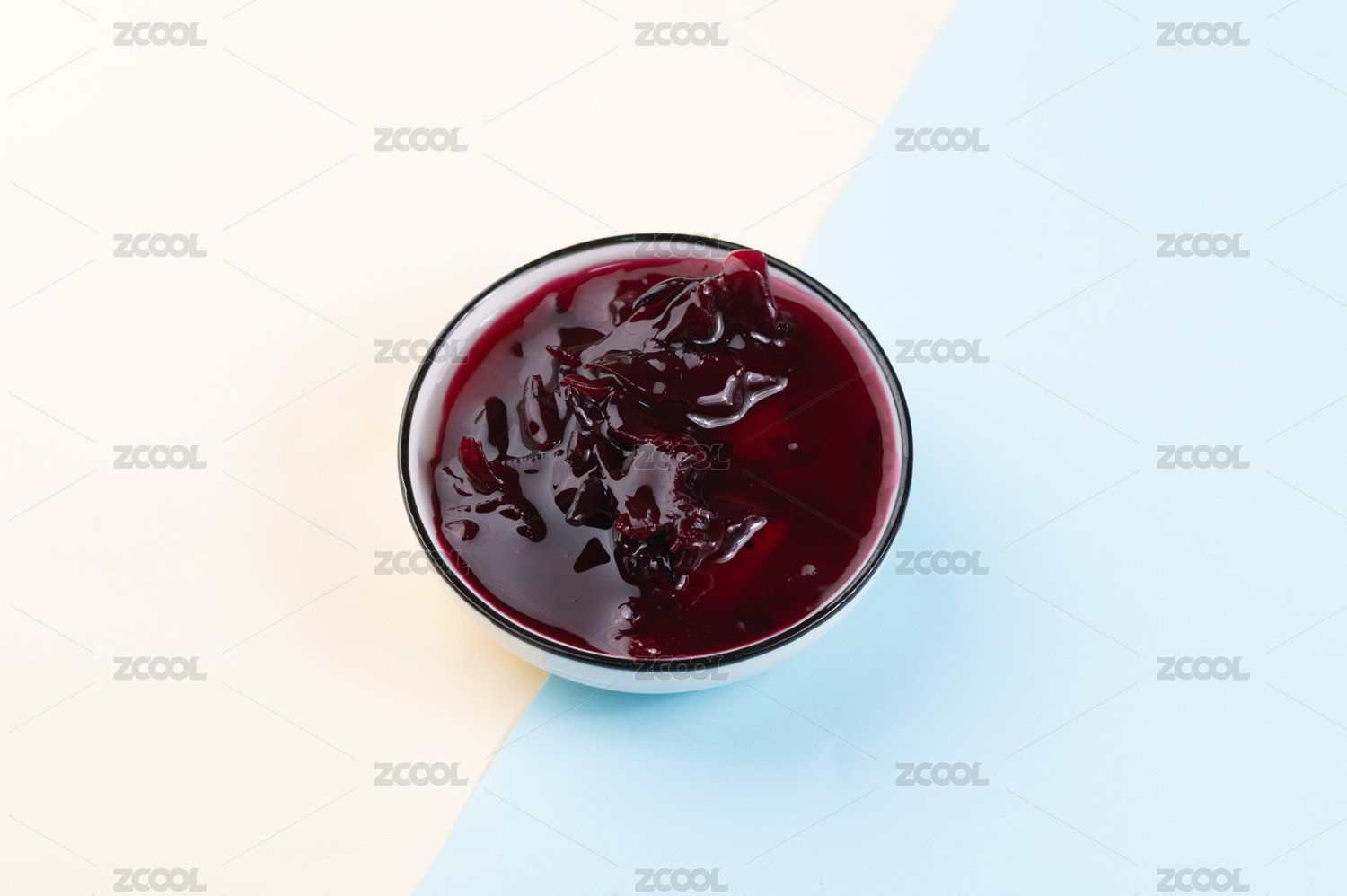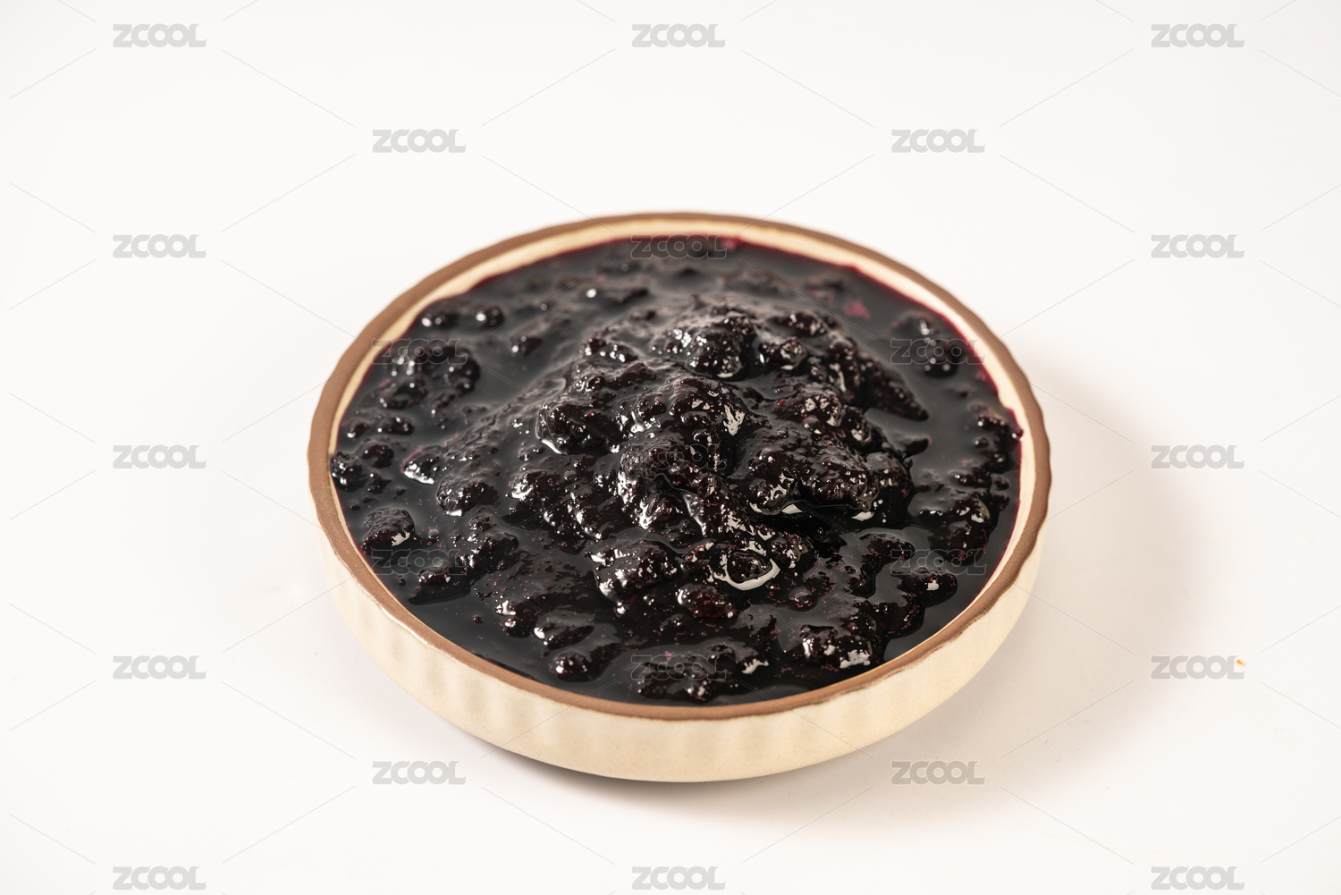 白色背景上一碗藍莓果醬