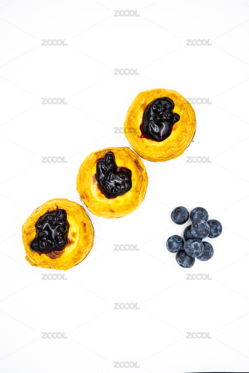 白色背景下的藍莓果醬蛋撻