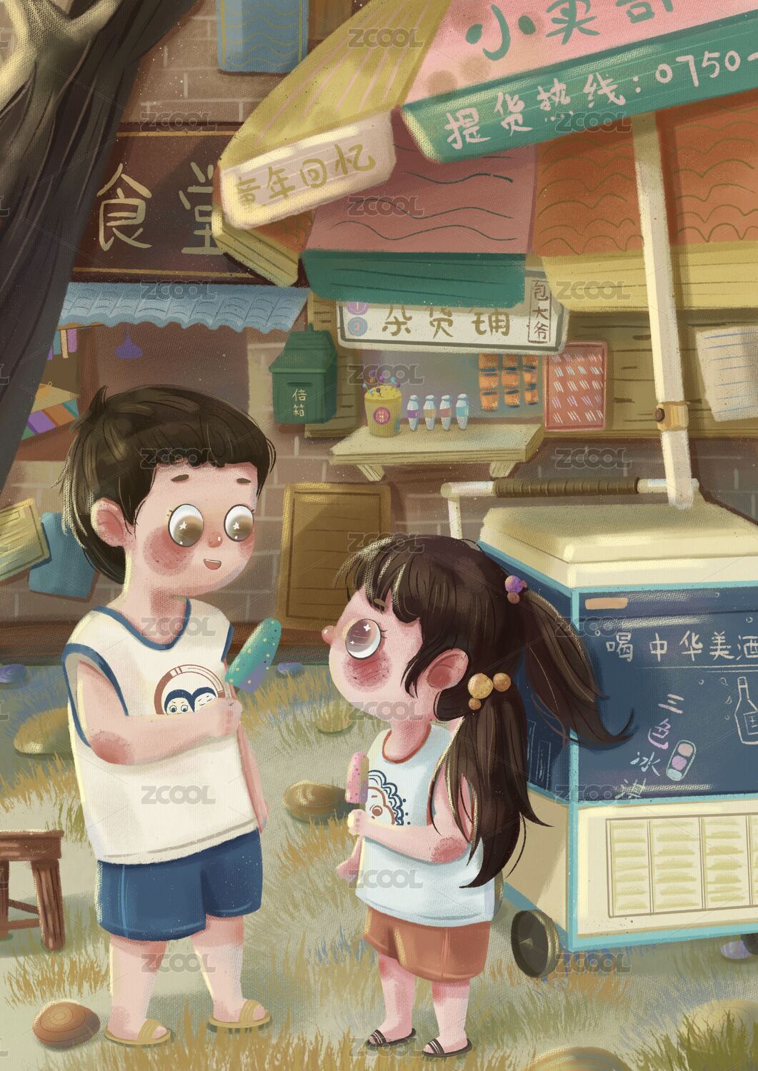 兒童卡通可愛風童話故事小雞冷飲零食插畫