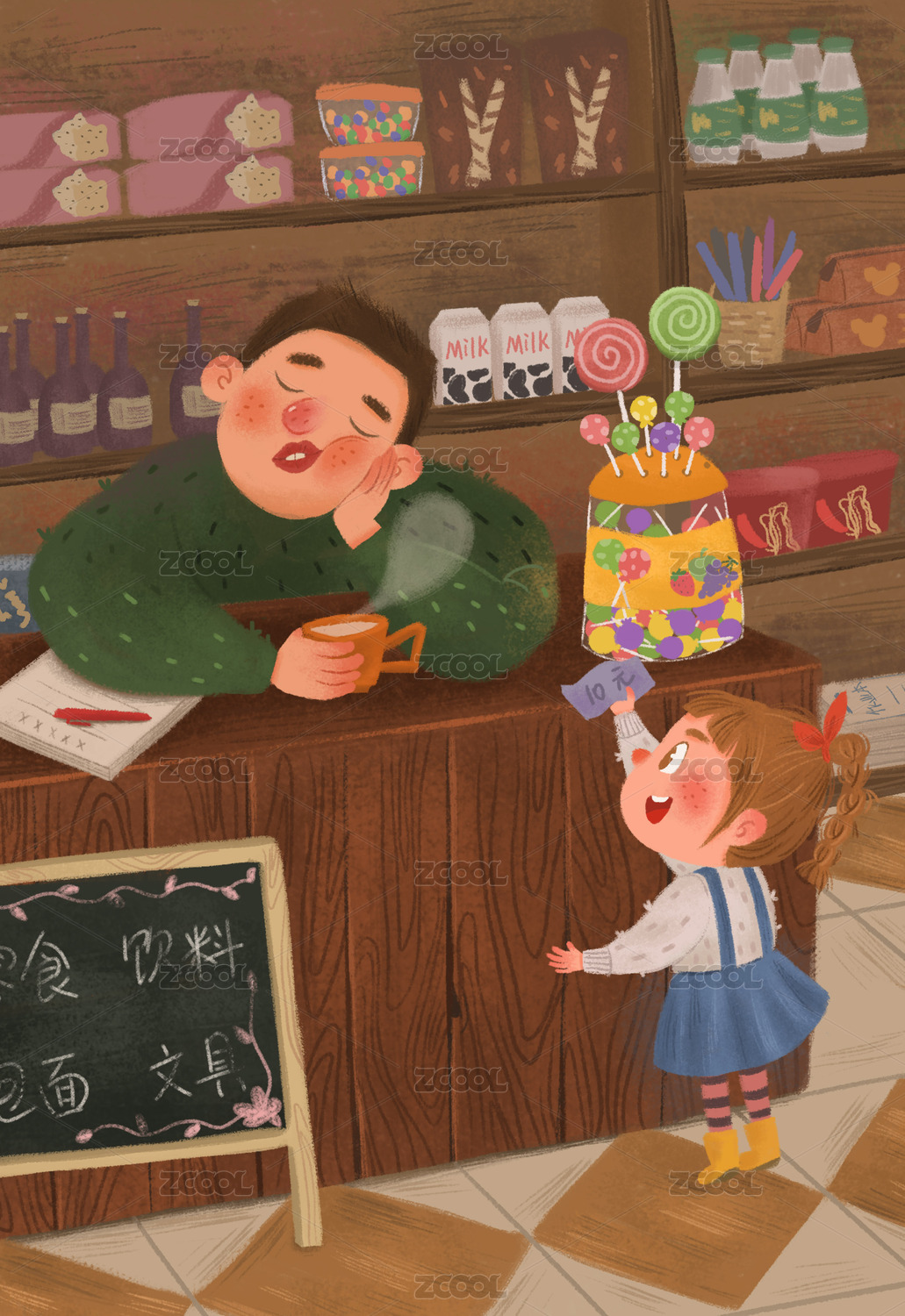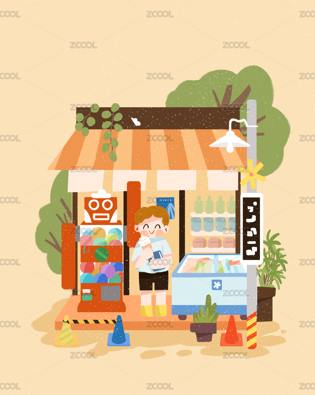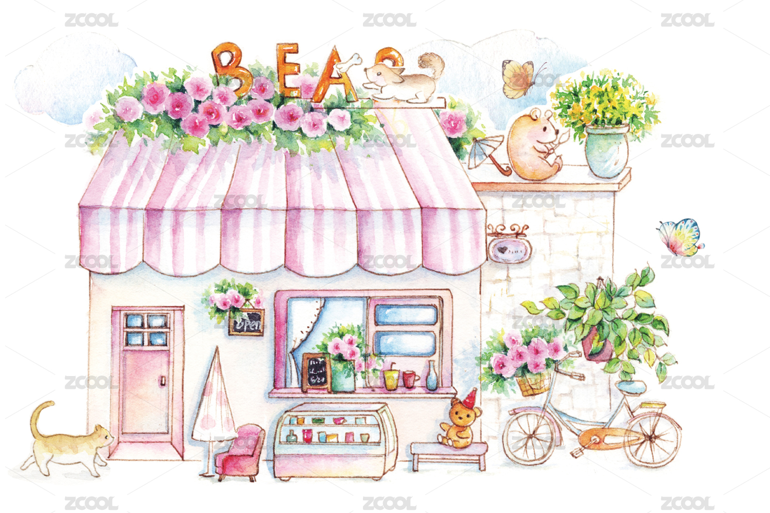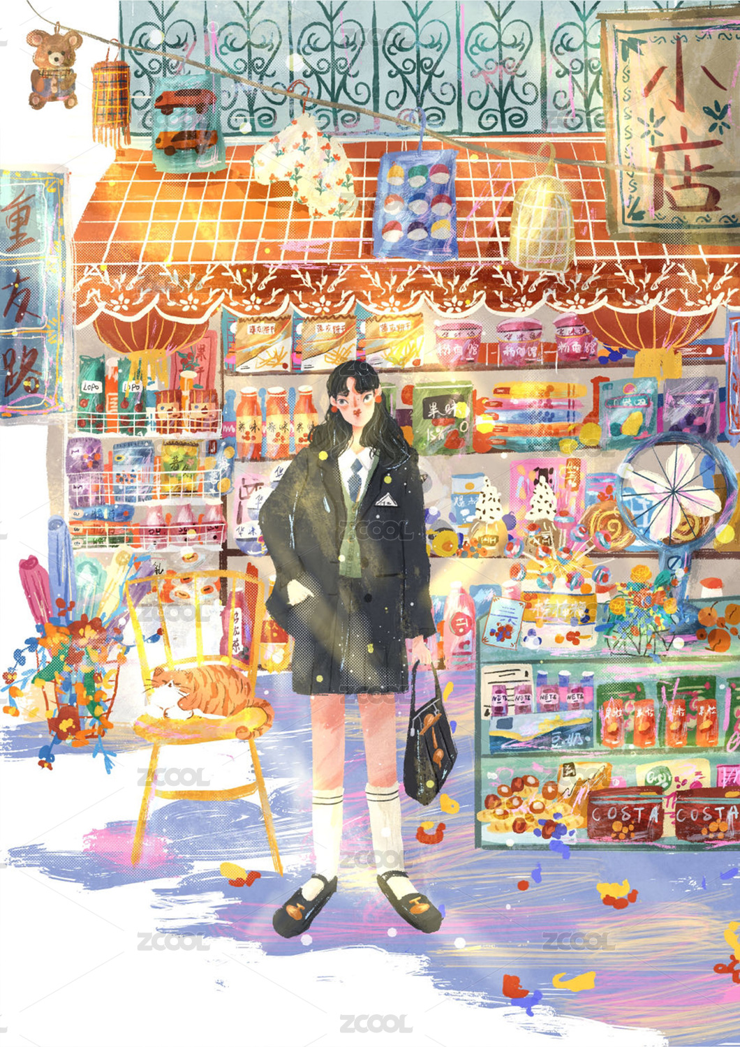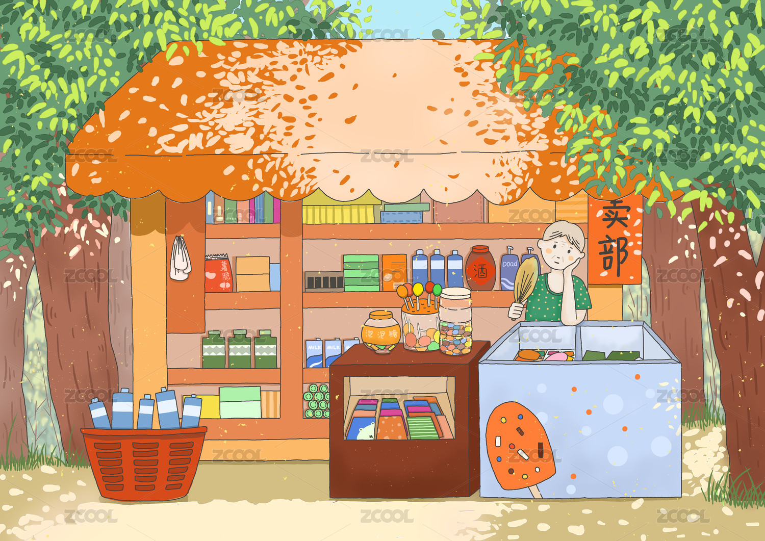 水彩可愛店鋪小賣部商鋪購物街小吃街旺鋪