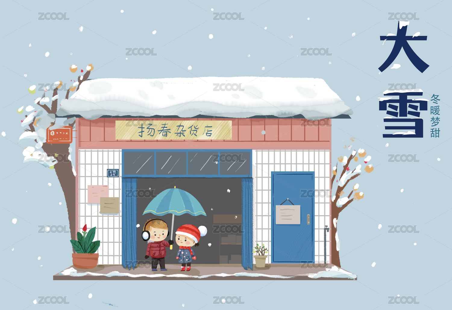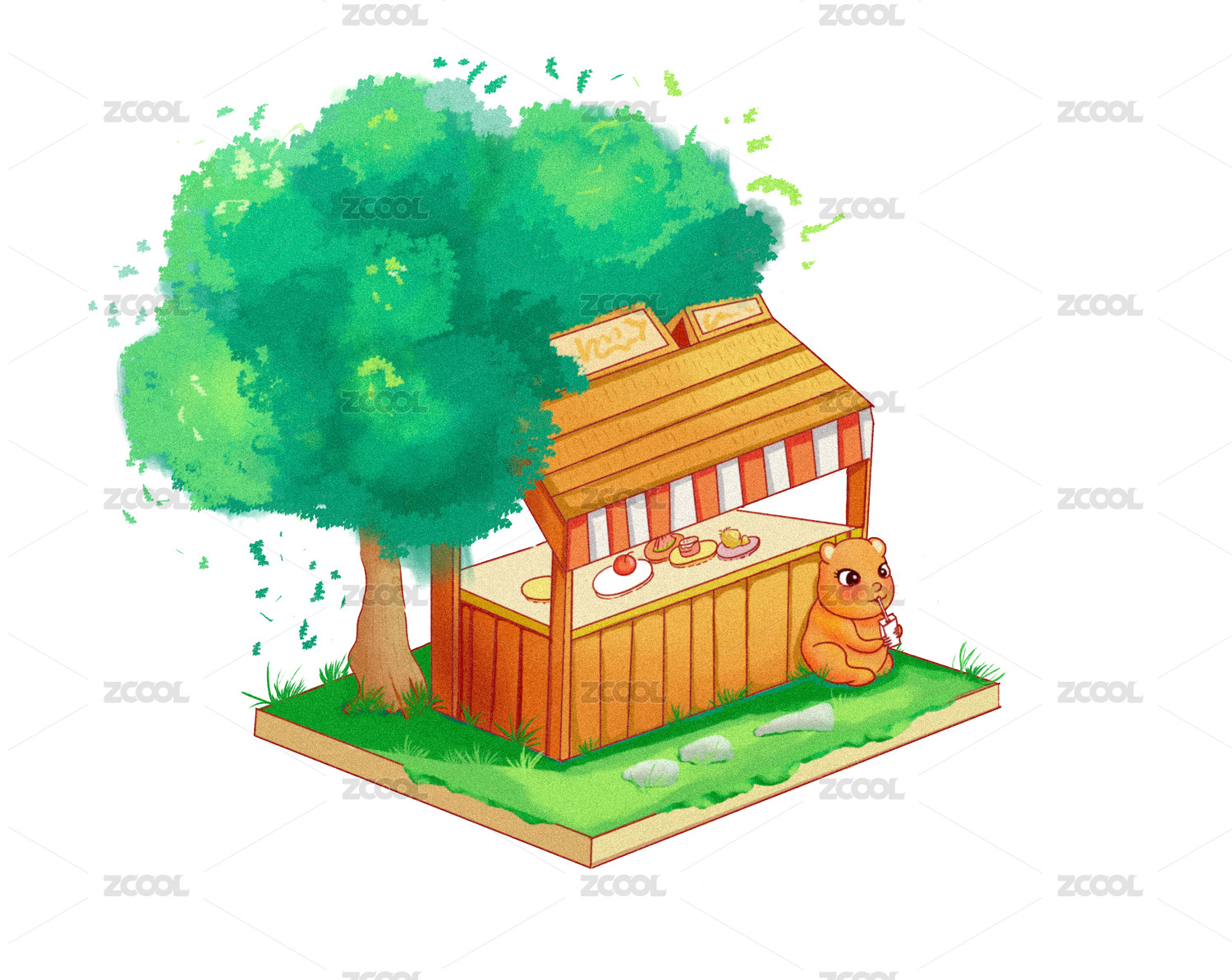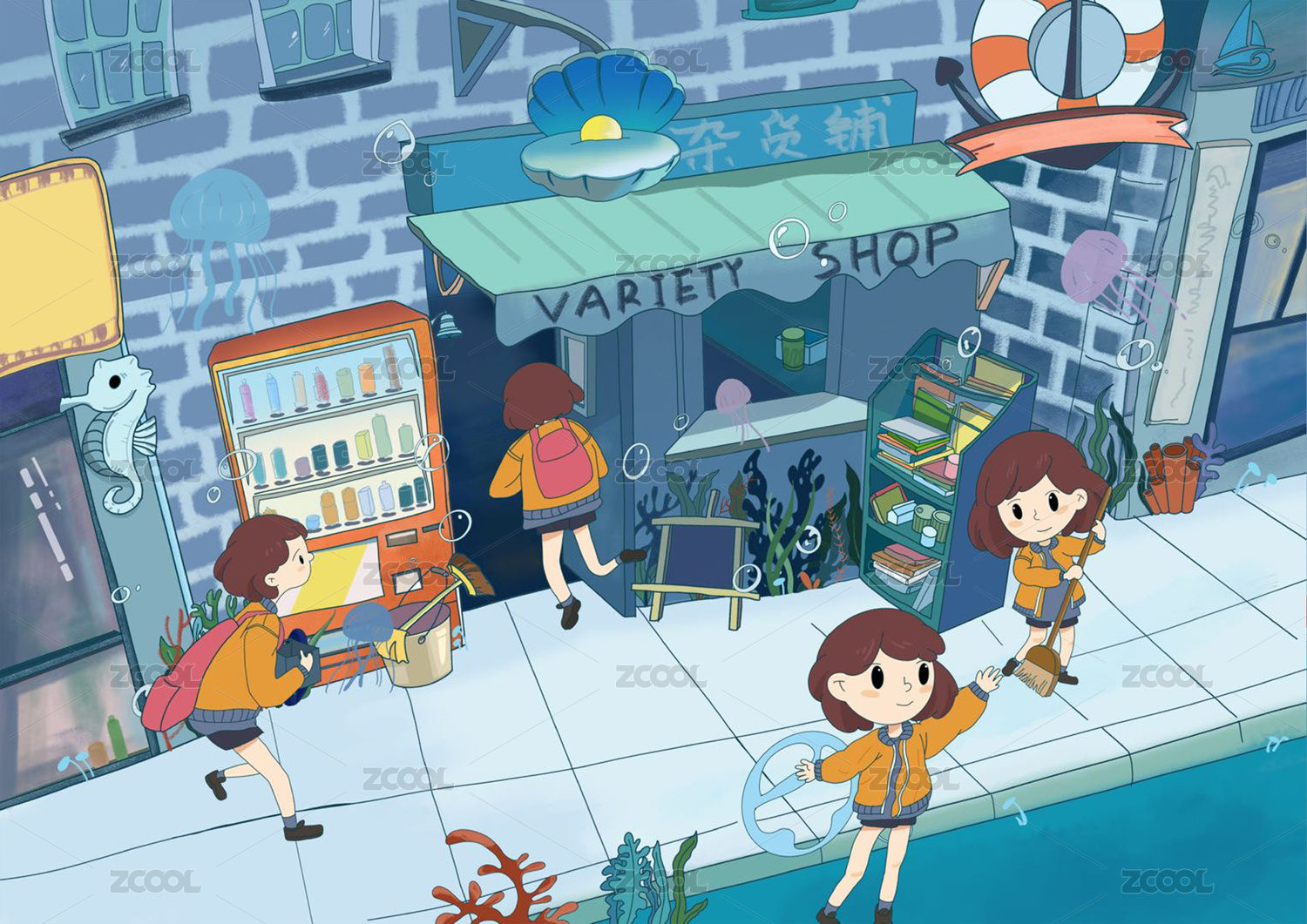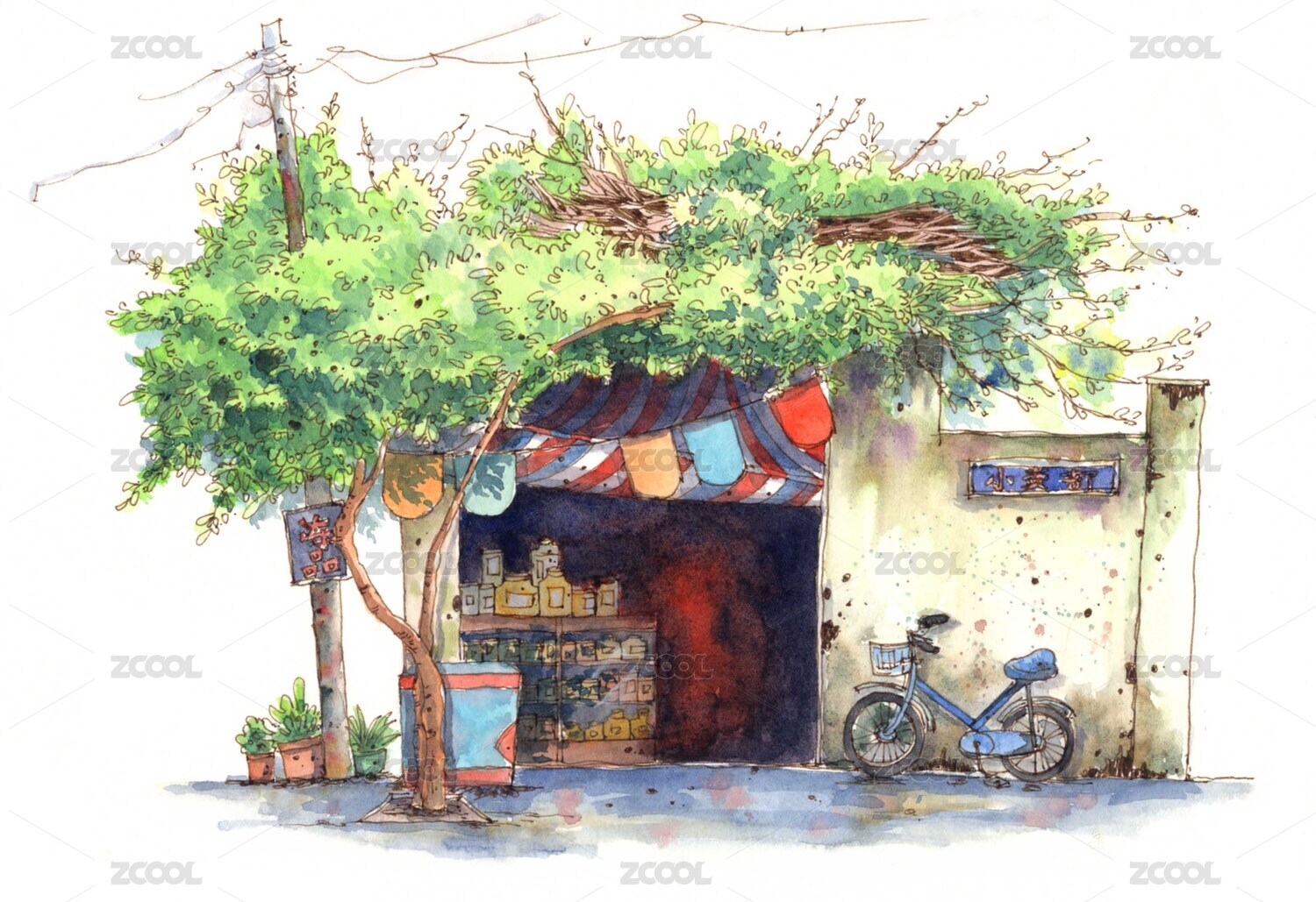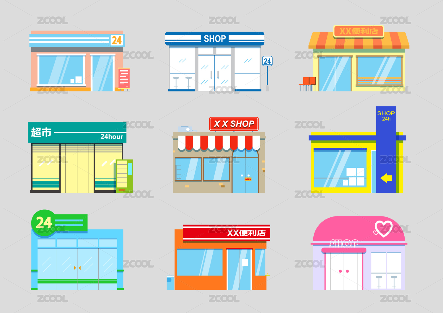 水彩可愛店鋪小賣部商鋪購物街小吃街旺鋪