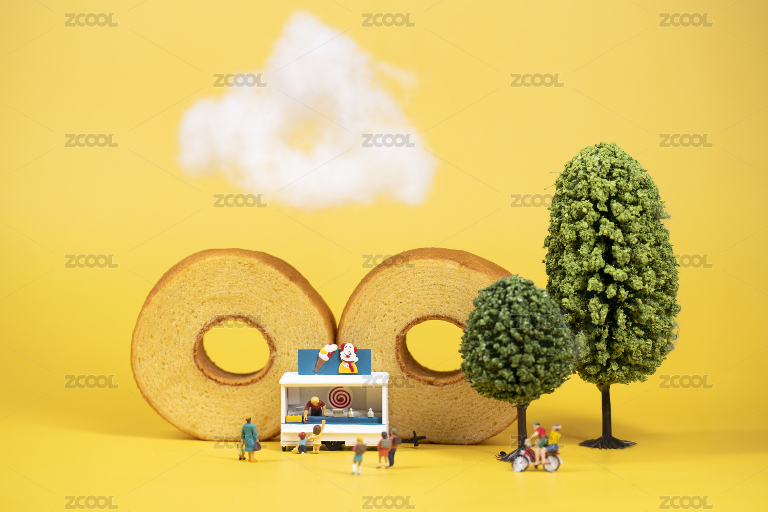 可愛卡通風游樂園火車玩具車移動小賣部插畫