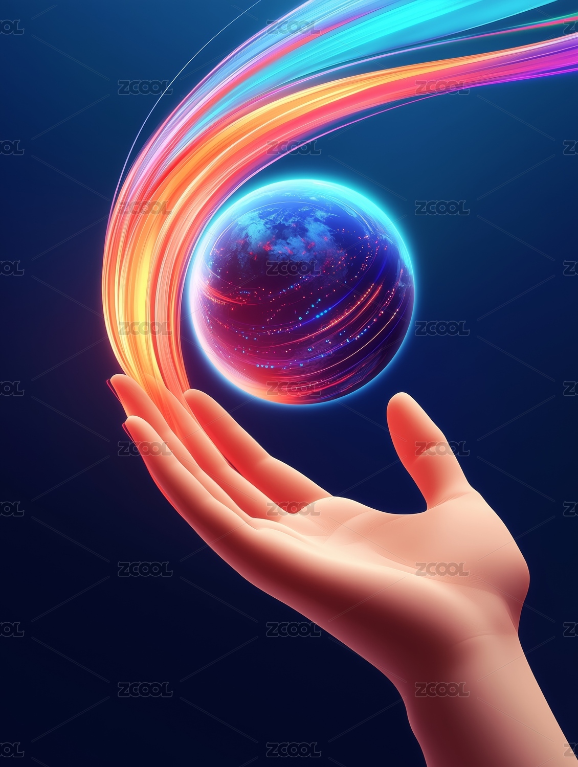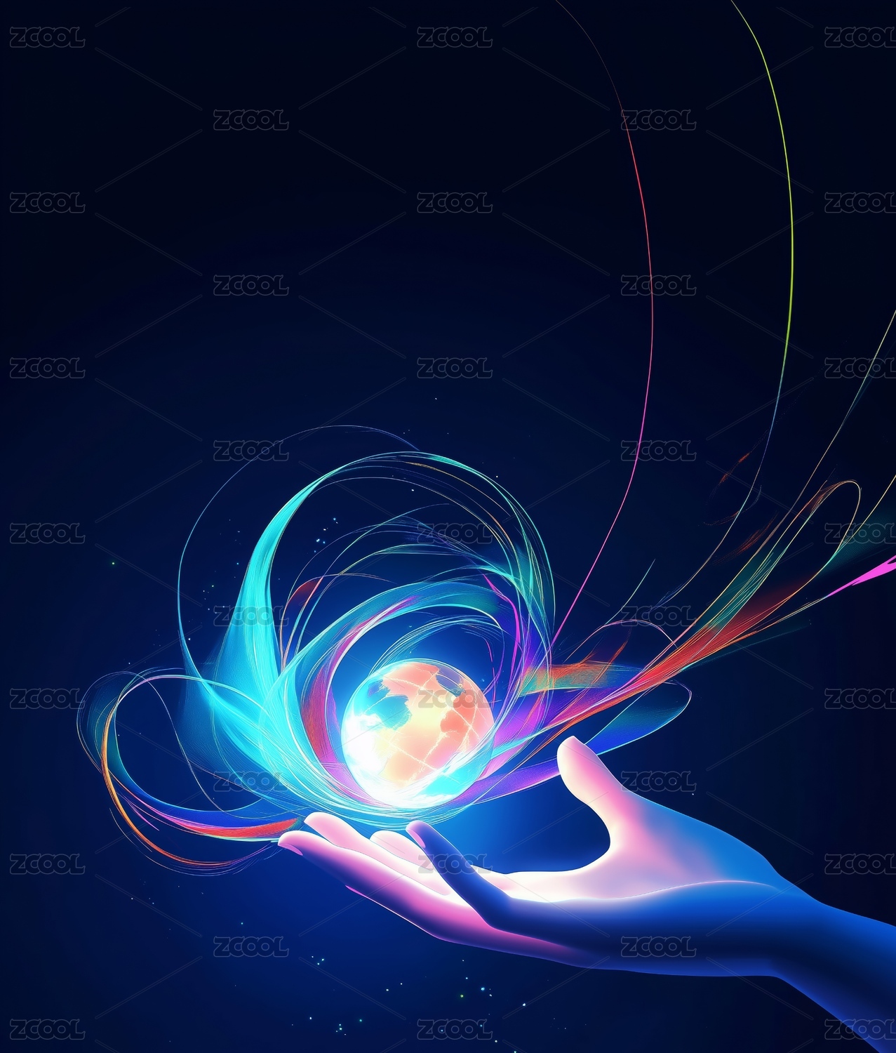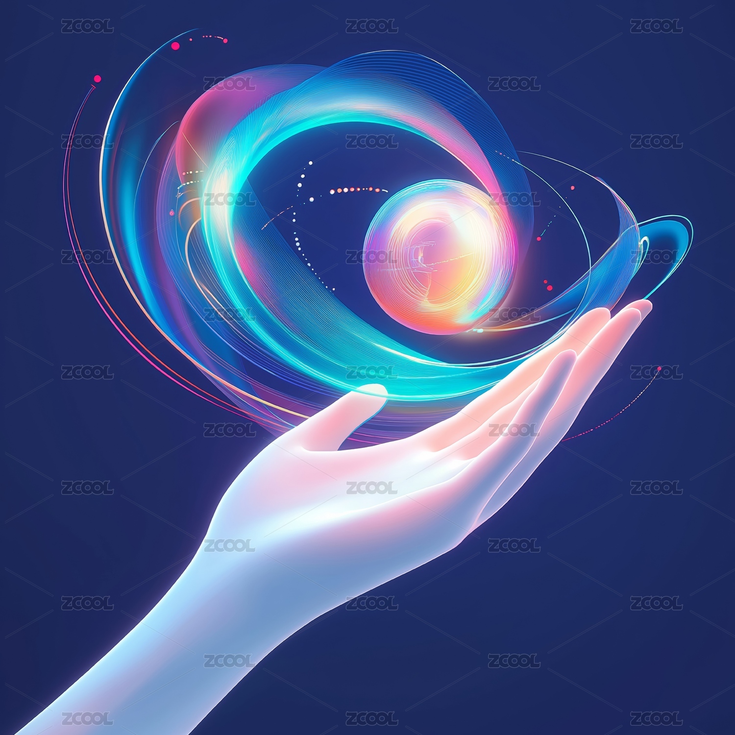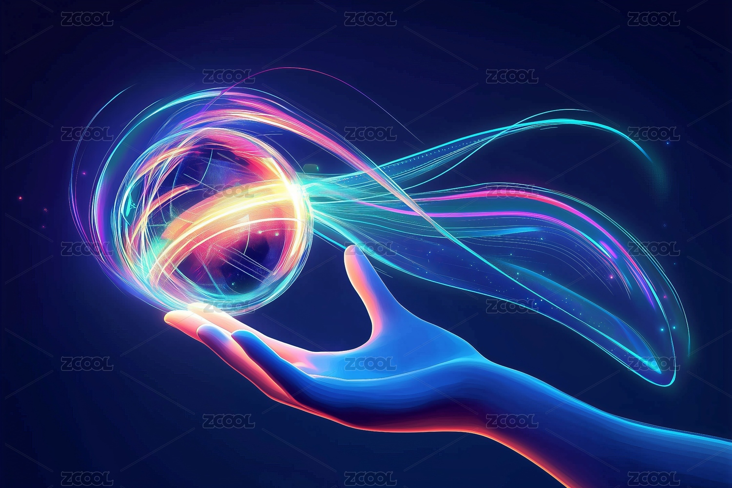 一個(gè)發(fā)光的抽象能量球在手掌上