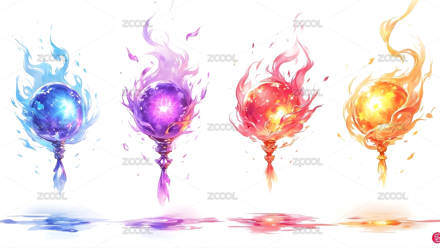 四色魔法球懸浮綻放