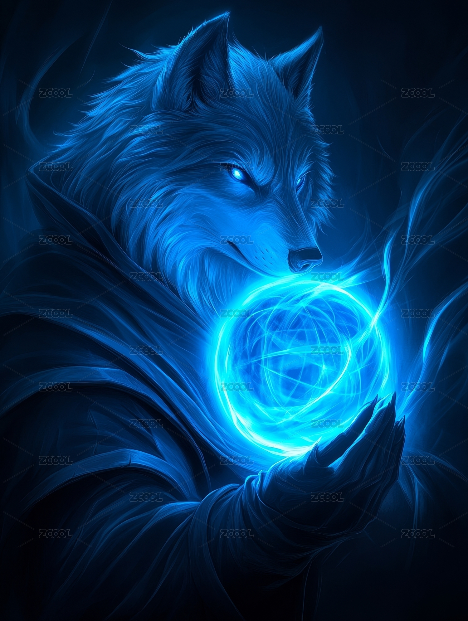 藍(lán)色魔法狼與能量球