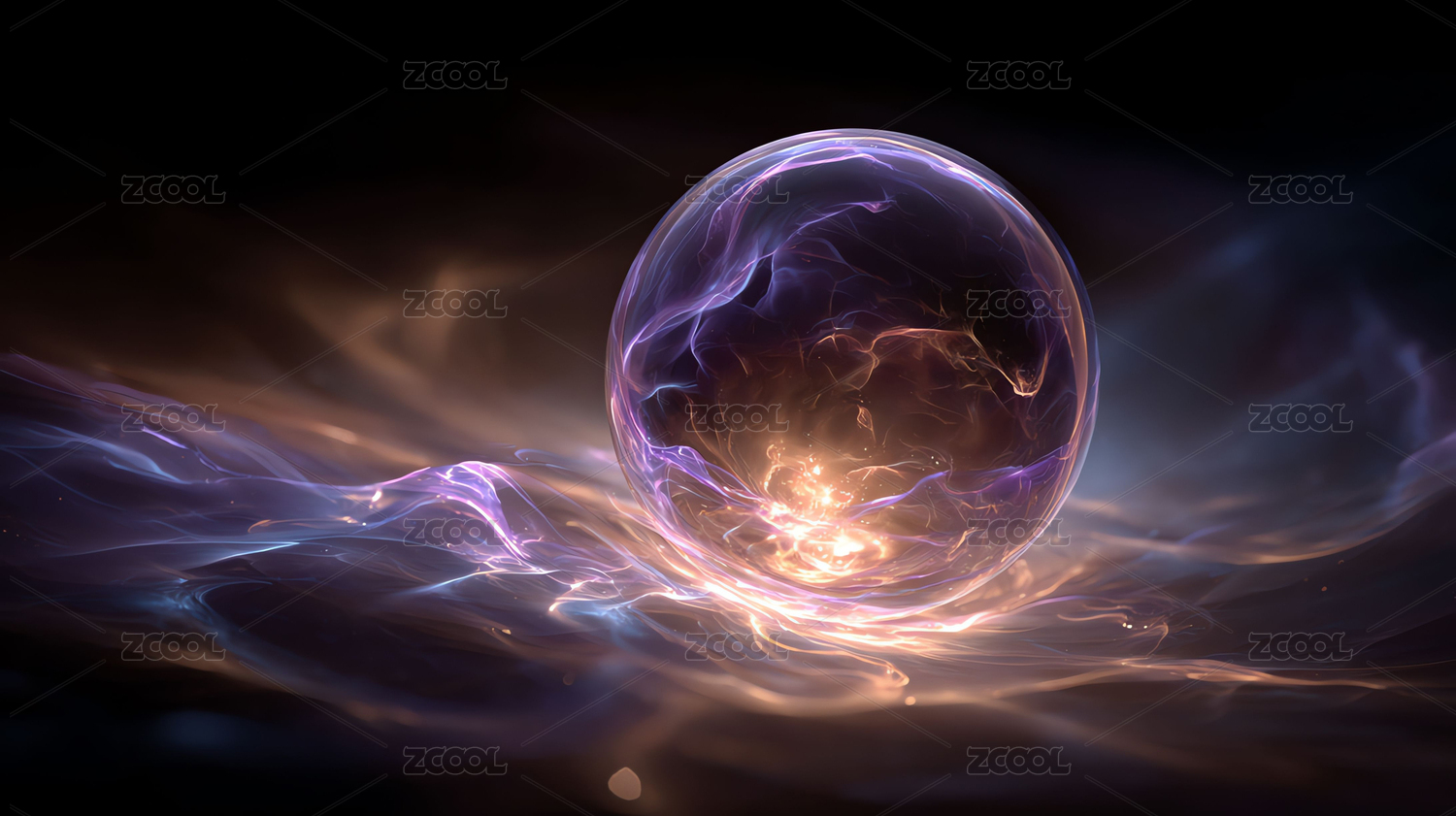神秘能量球懸浮于光影漩渦之中