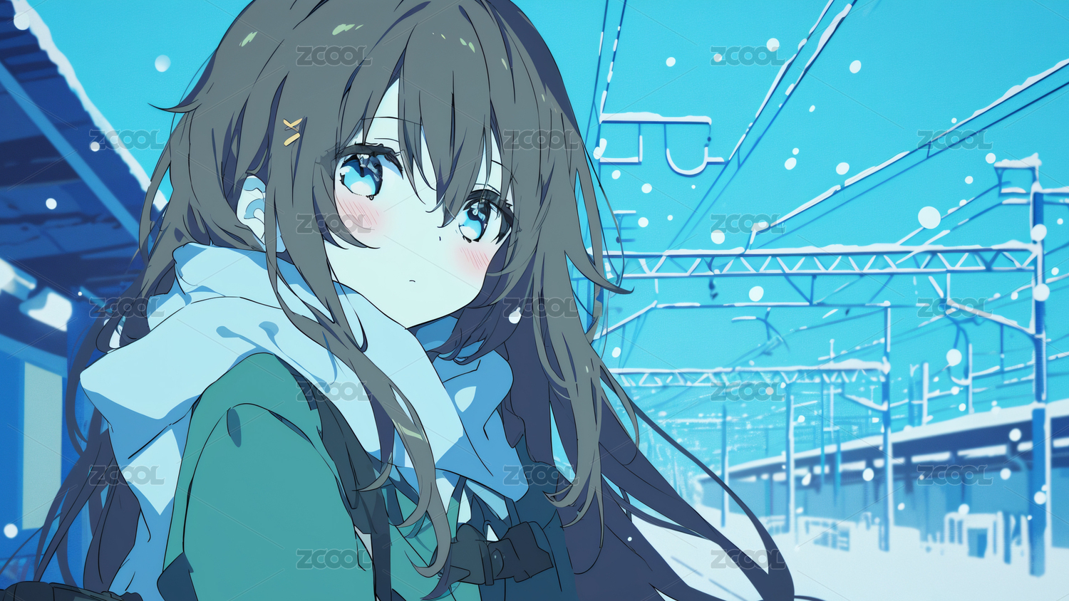 雪景下等候的少女