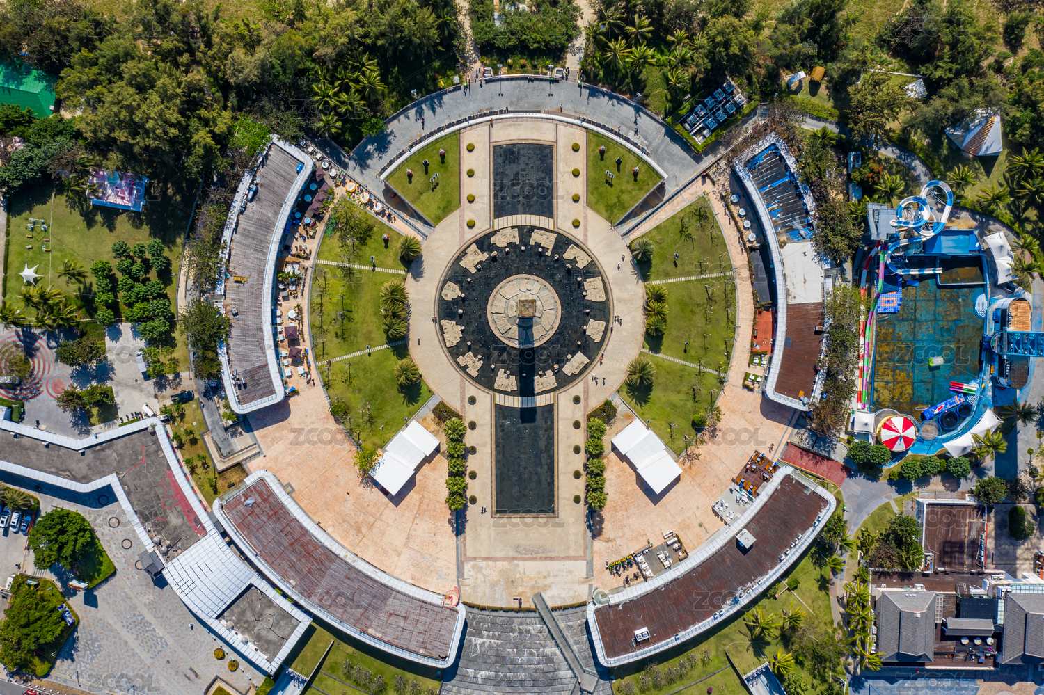 航拍海南三亞亞龍灣中心廣場(chǎng)圖騰柱地標(biāo)建筑