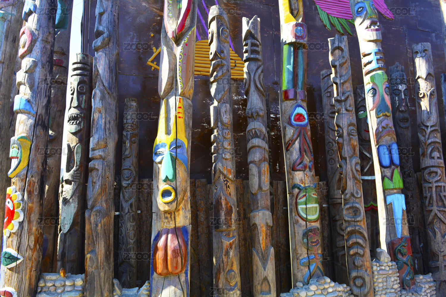 精心雕刻的五彩的圖騰柱
