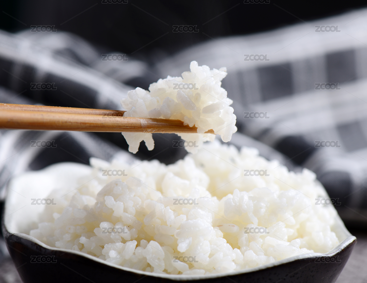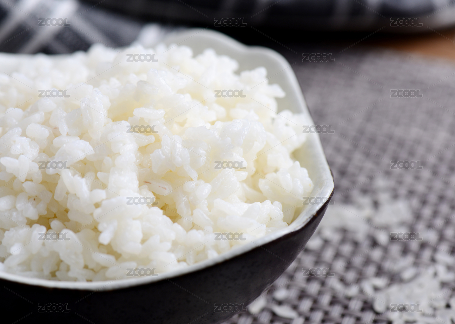 深色黑白網(wǎng)格背景的白米蒸飯