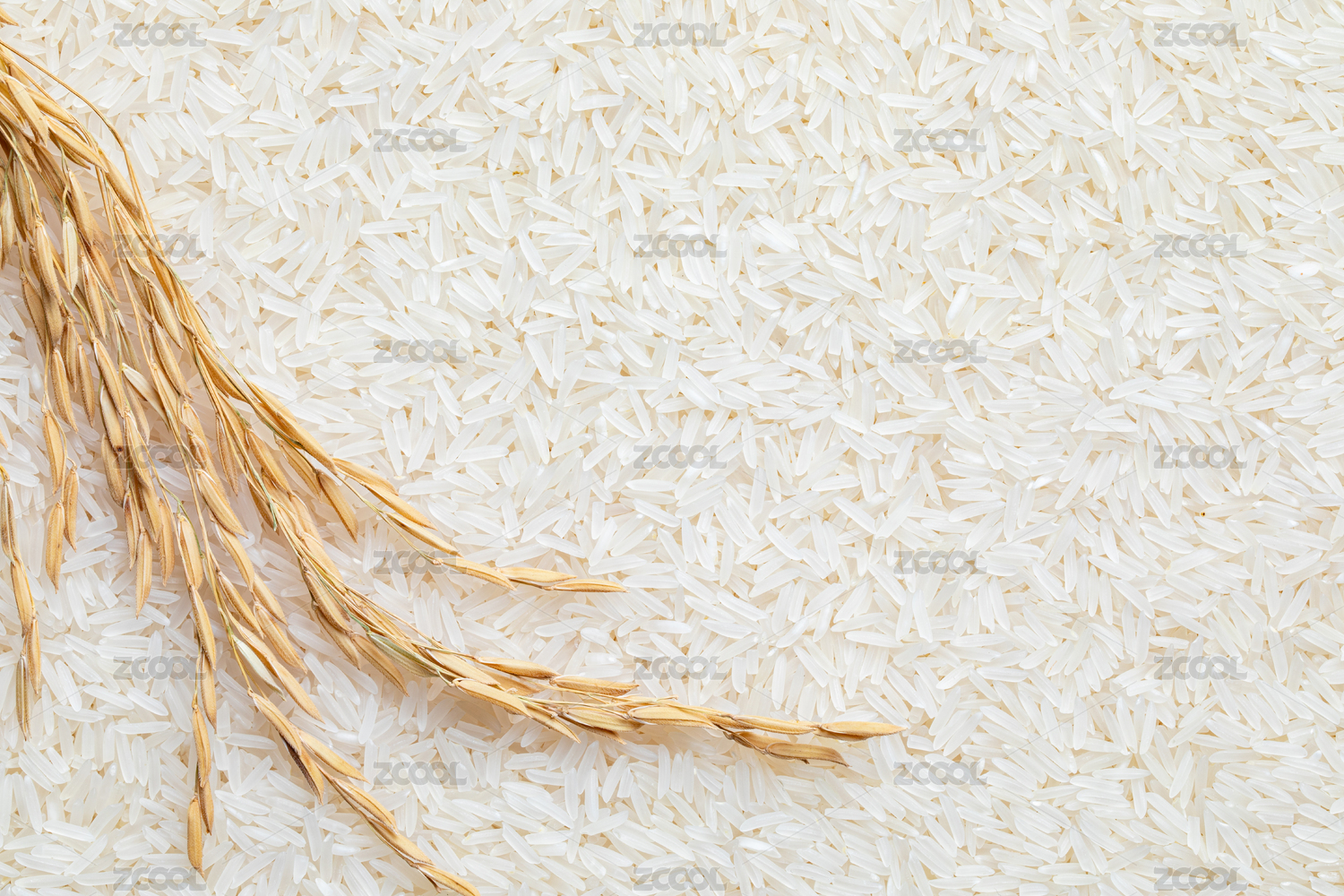 一串稻穗在白米背景上的創(chuàng)意組合
