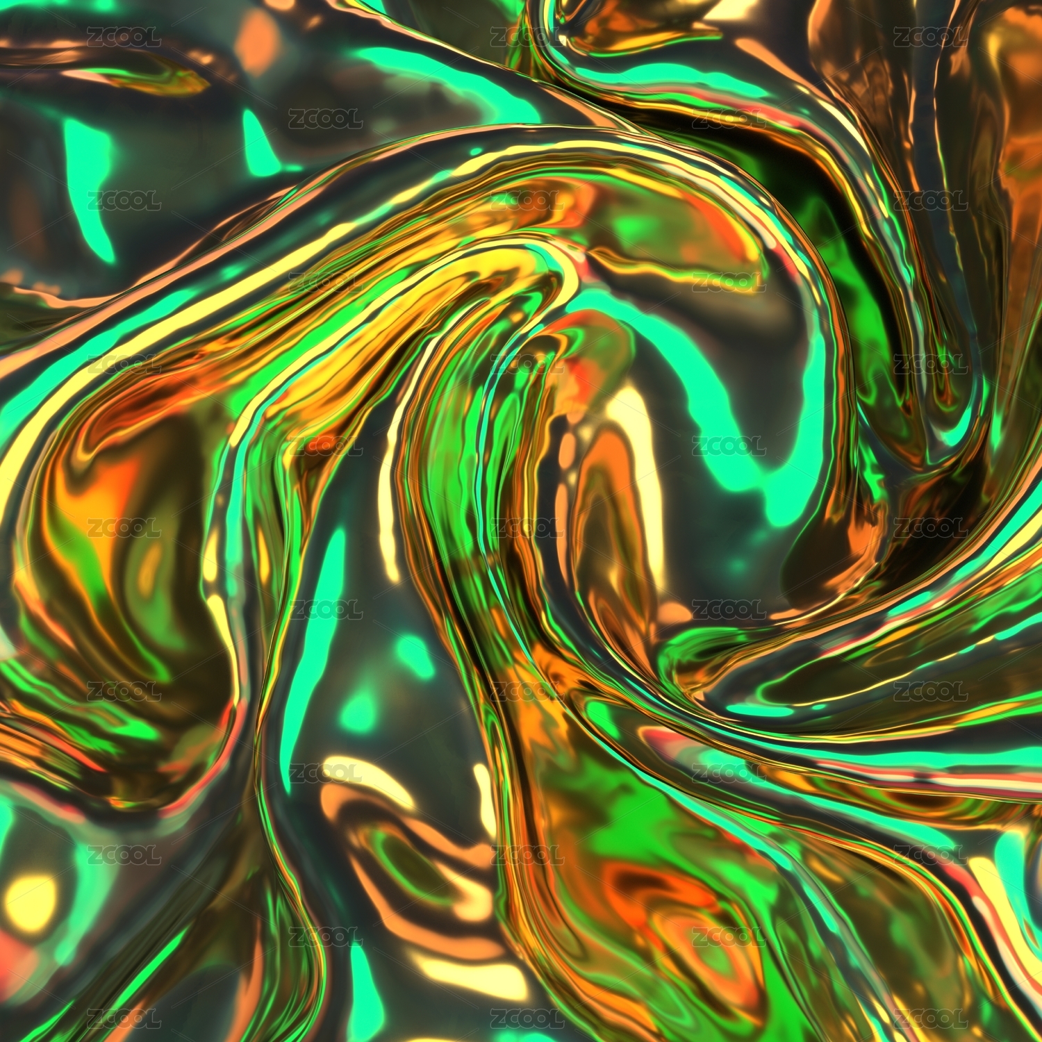 全息金屬箔彩虹波、流動液體分形抽象紋理。