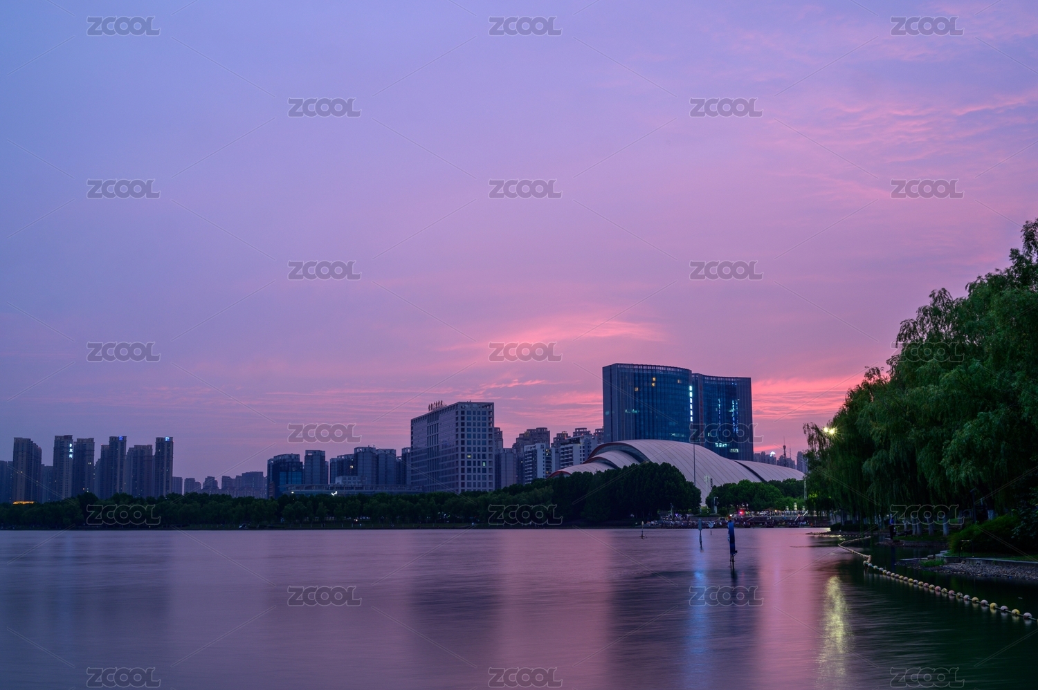 天鵝湖和合肥大劇院的倒影