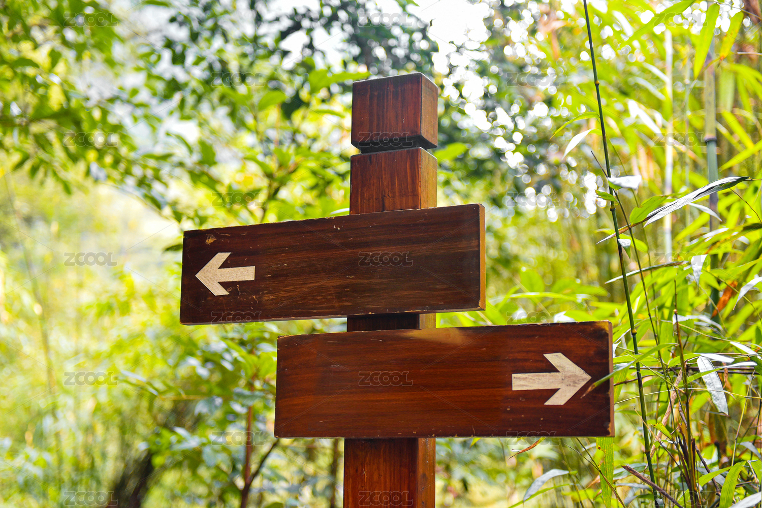 風(fēng)景名勝區(qū)里帶有箭頭的木質(zhì)指路牌