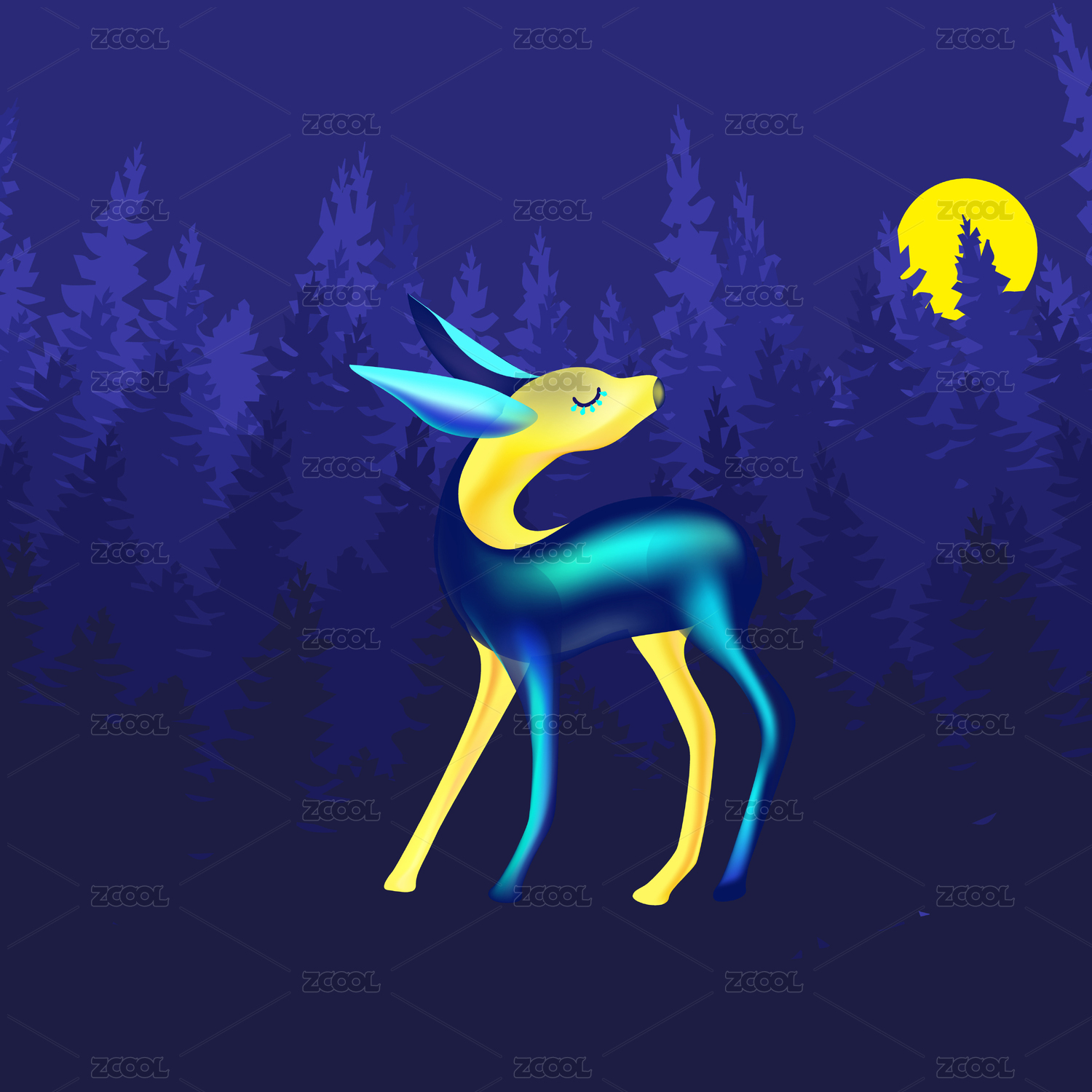鹿抽象藝術(shù)彩色插畫