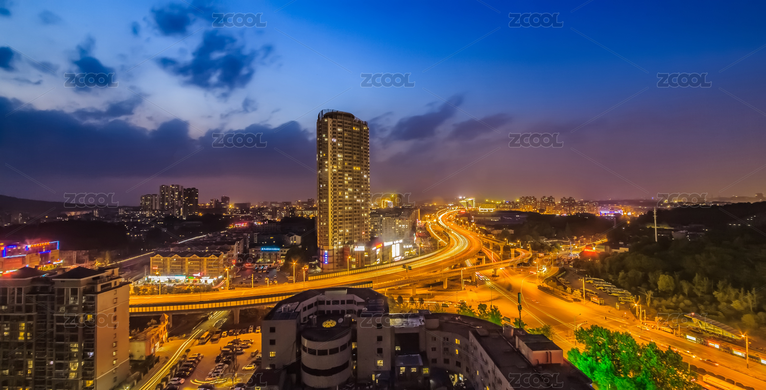 中國江蘇省南京市江北區(qū)夜晚燈光立交橋建筑