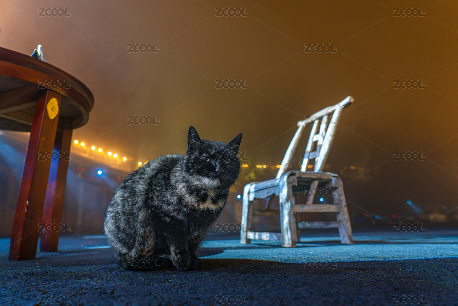 夜晚燈光中的椅子