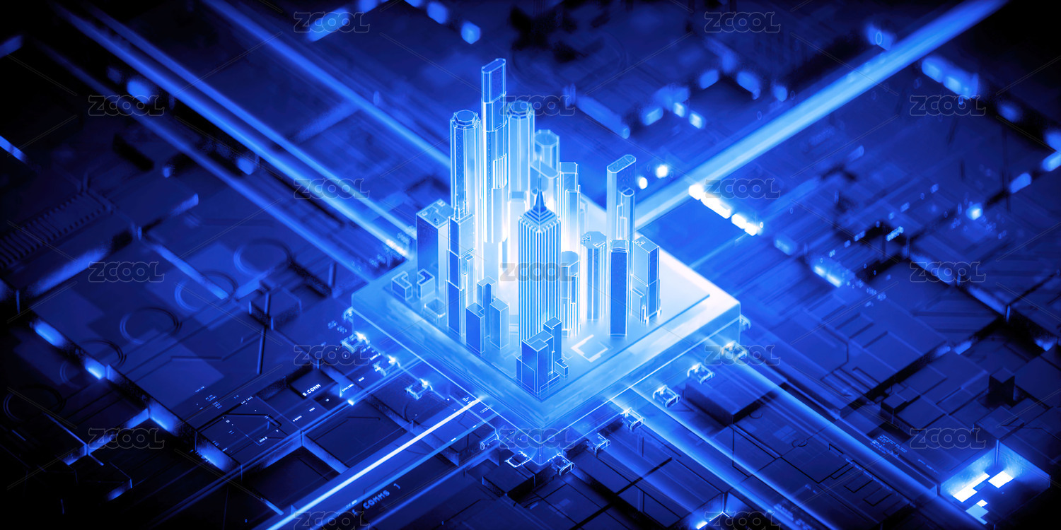 芯片金融科技賽博朋克人工智能三維渲染電路