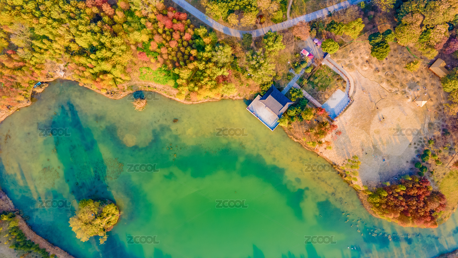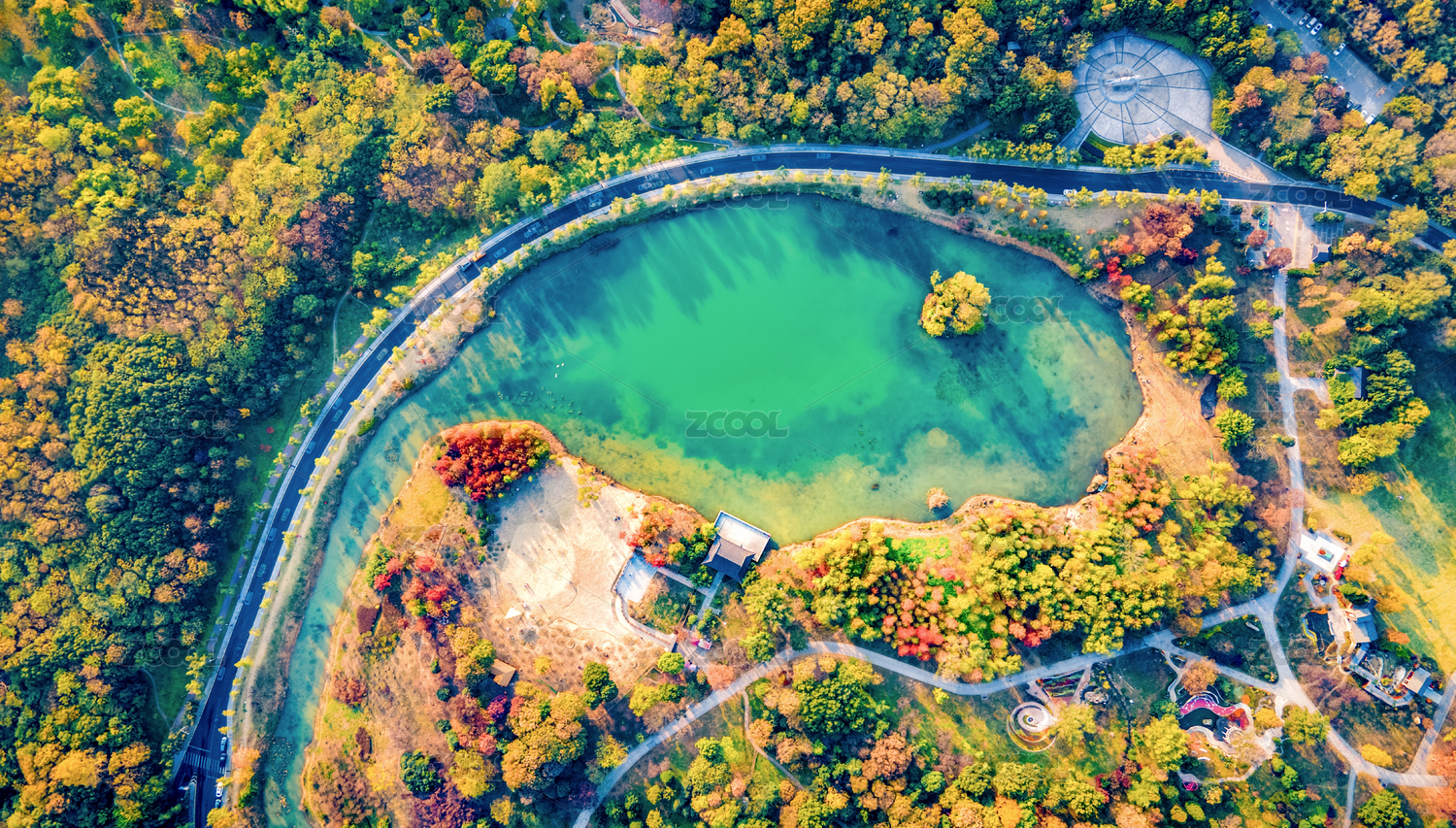 航拍秋天的中國江蘇南京燕雀湖