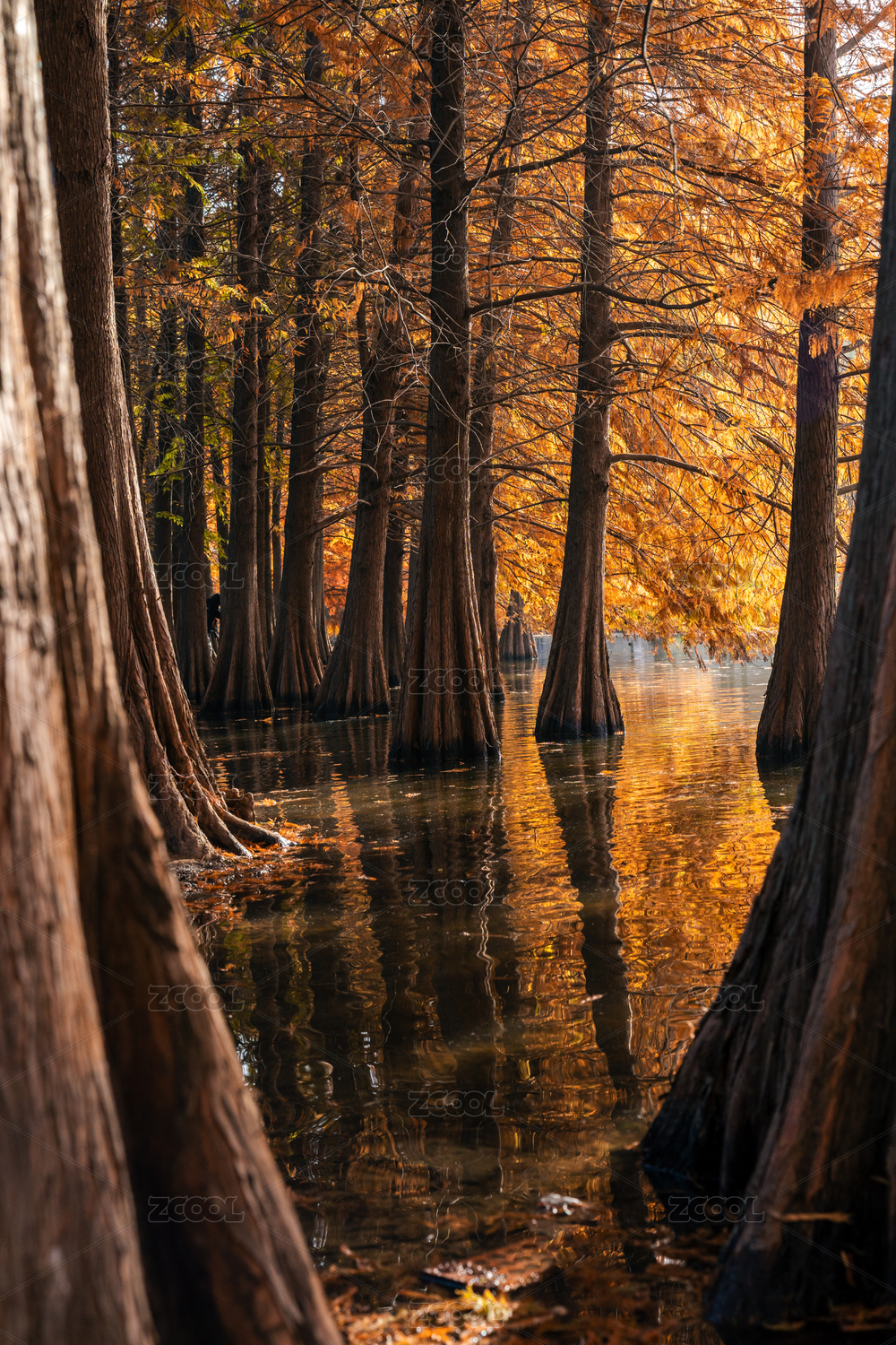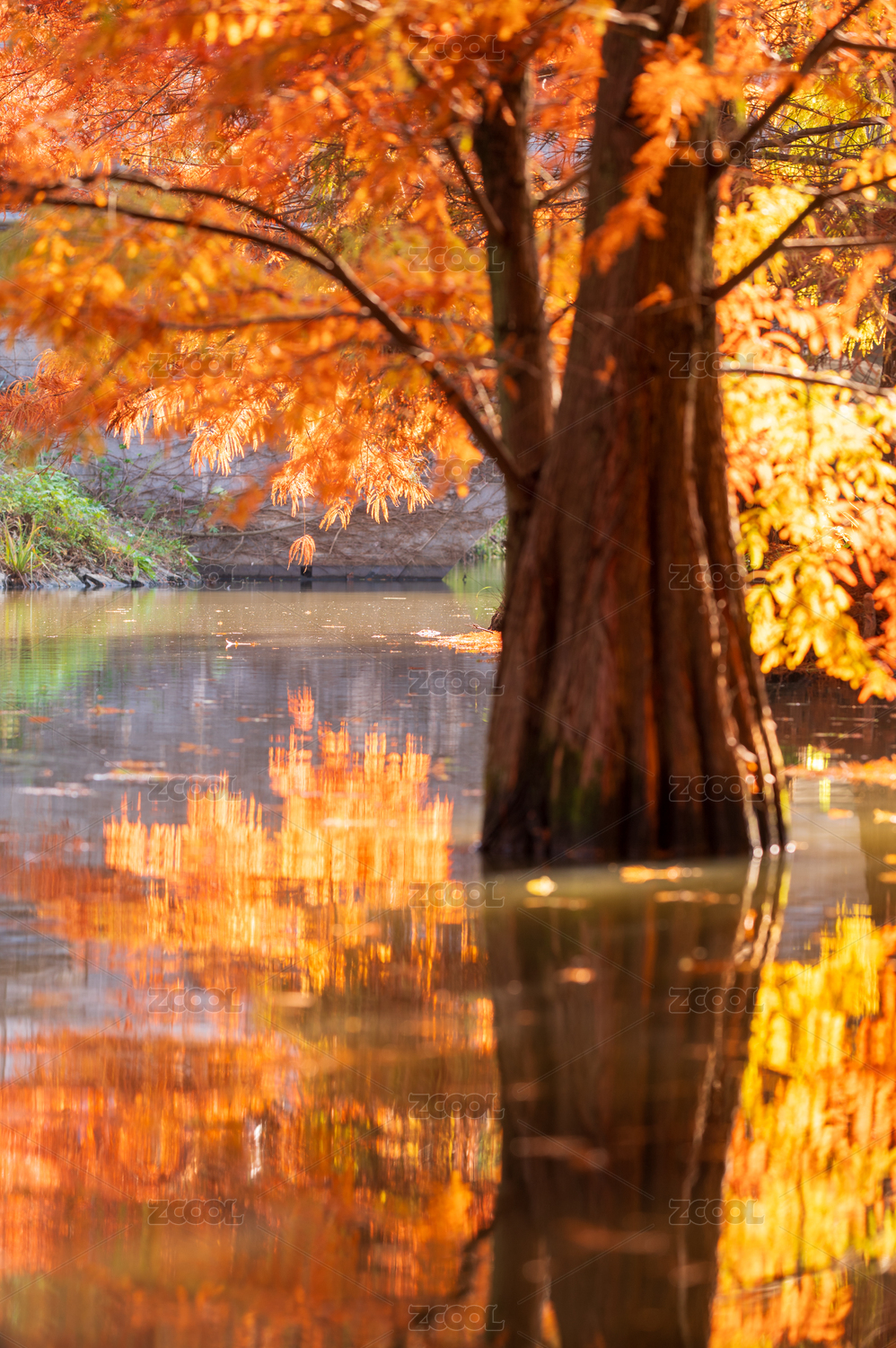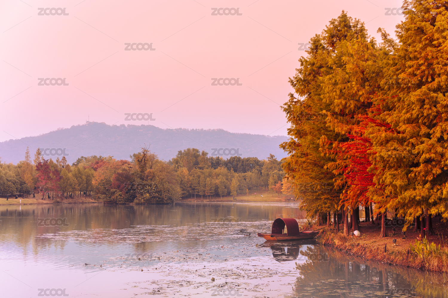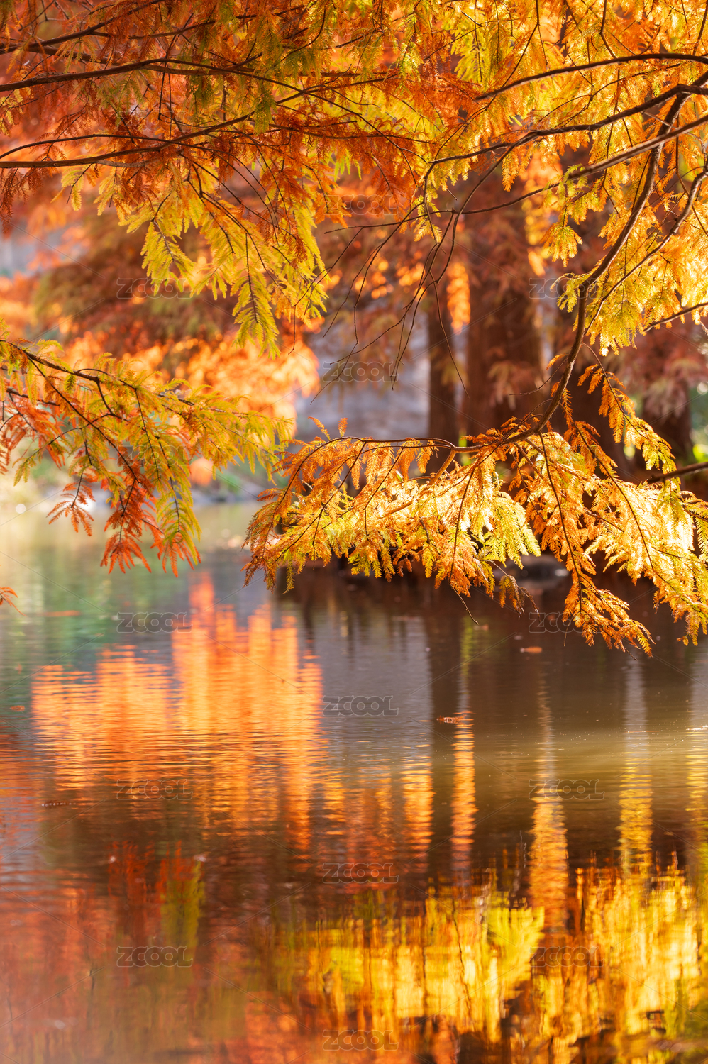 南京燕雀湖秋季紅色的落羽杉和倒影