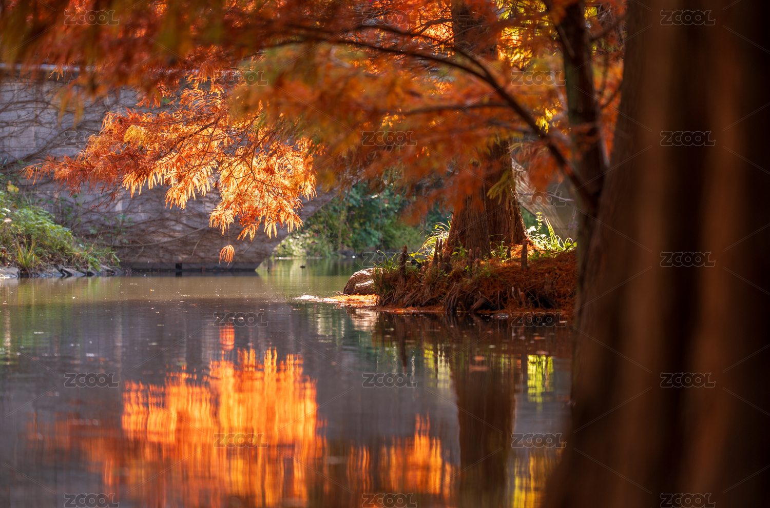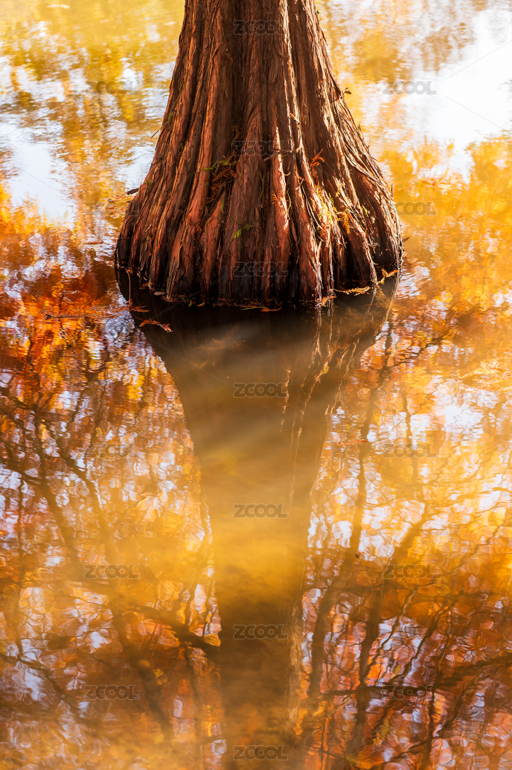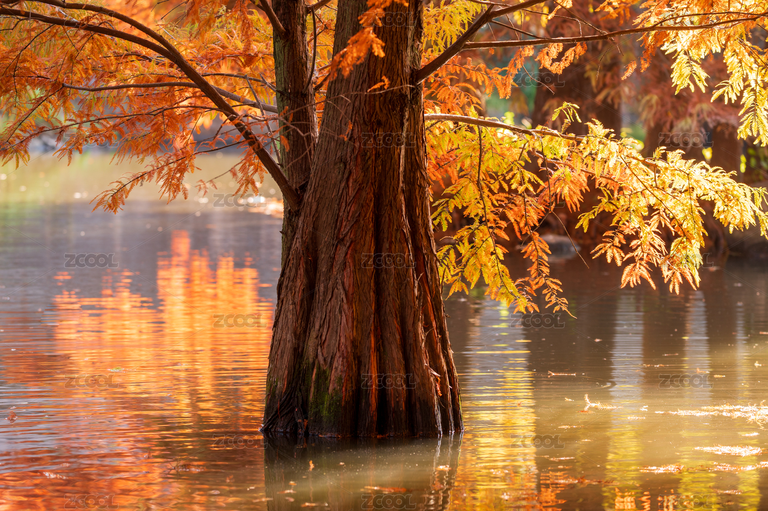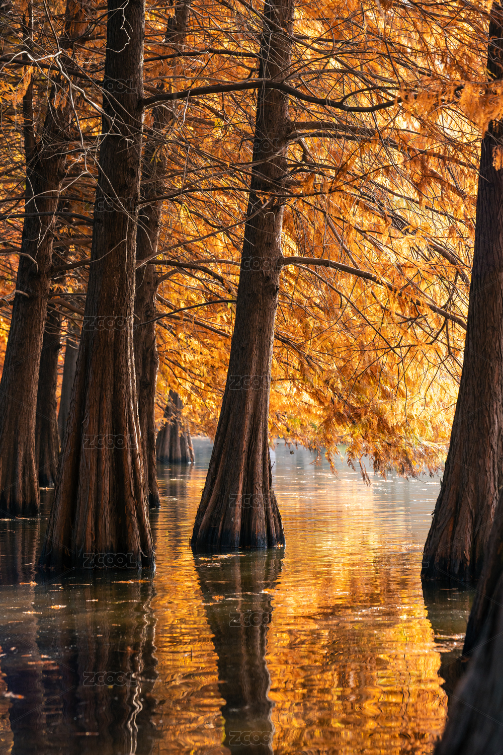 南京燕雀湖秋季紅色的落羽杉和倒影