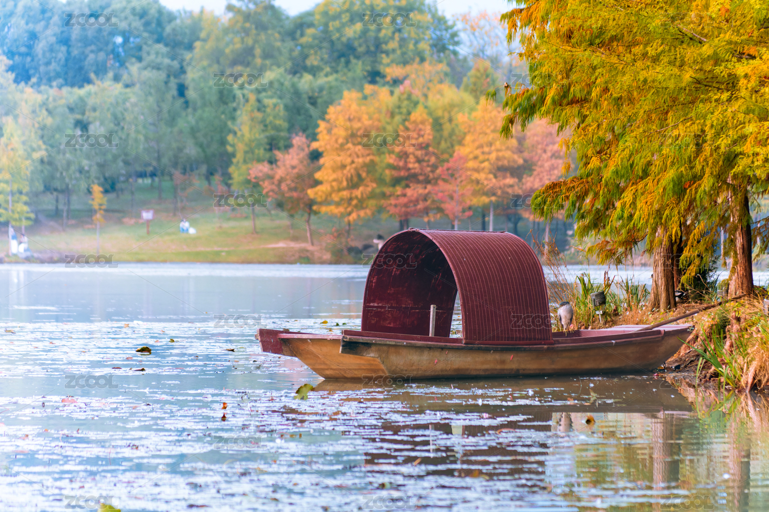 南京燕雀湖秋日湖畔的靜謐小船
