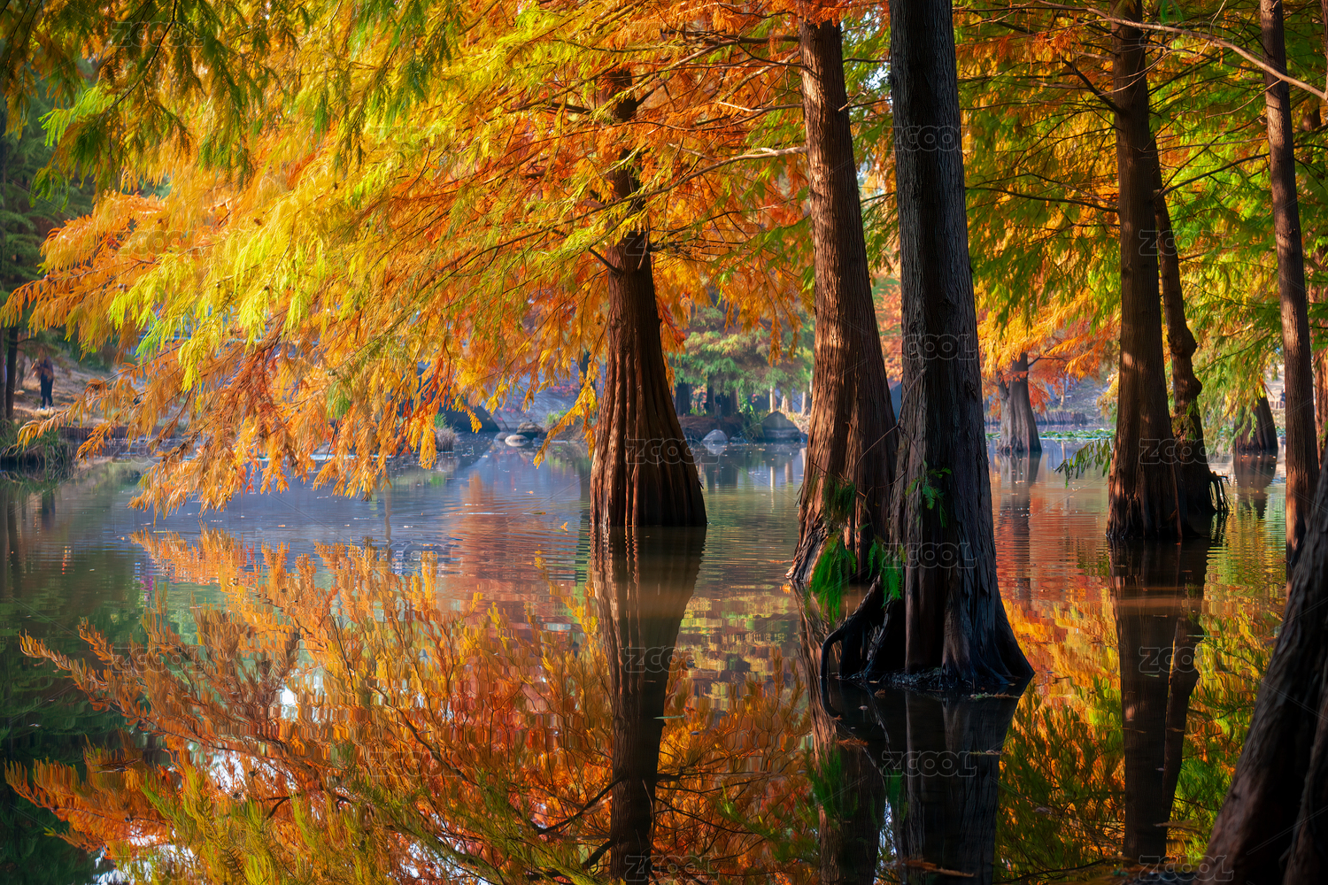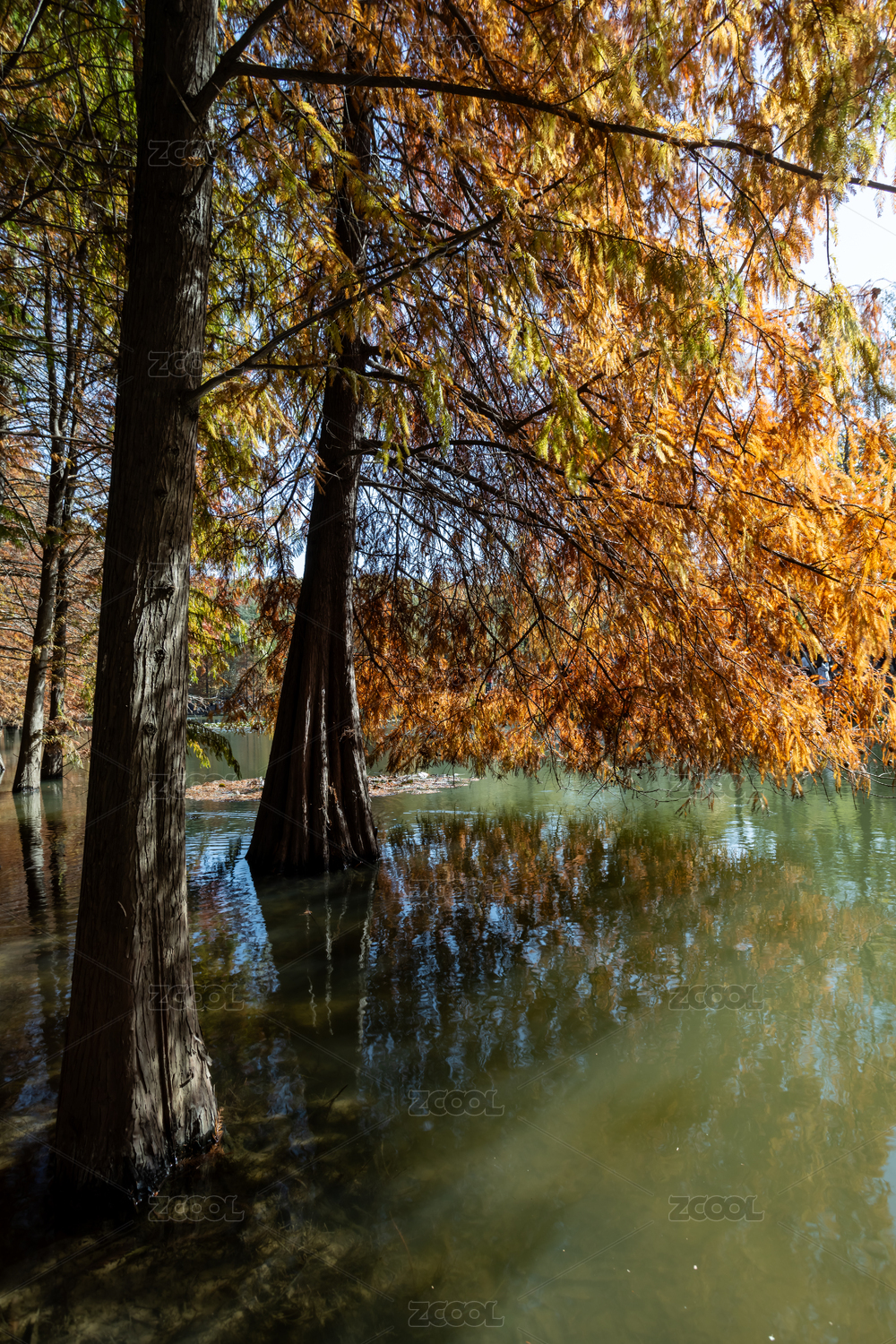 秋天南京燕雀湖邊的落羽杉