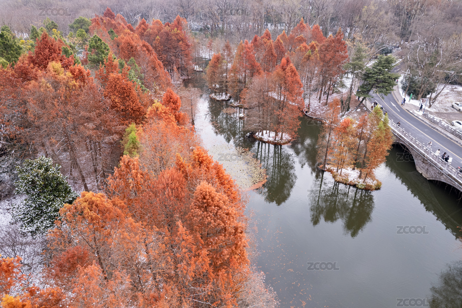 南京燕雀湖冬季初雪航拍風(fēng)光