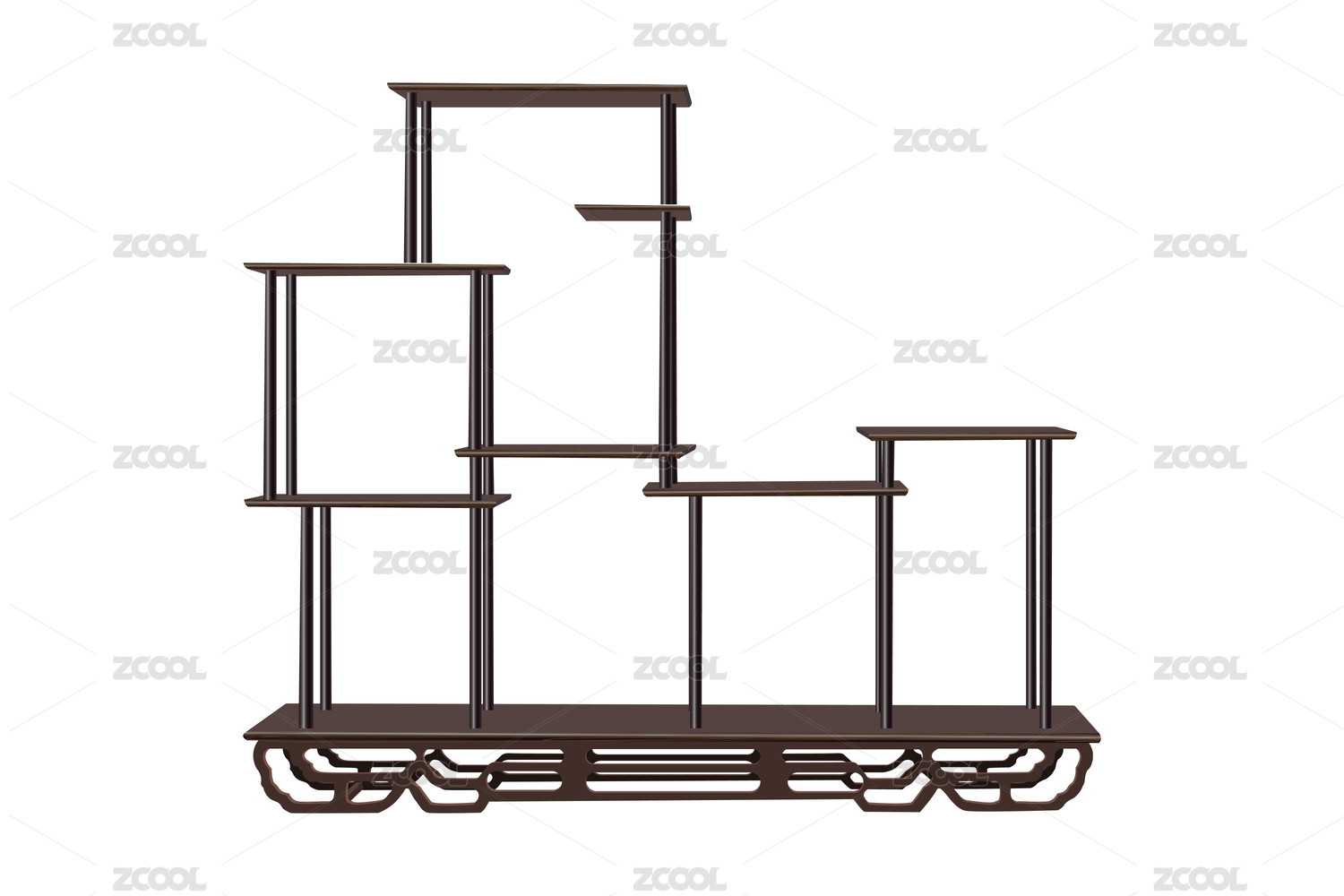 一個(gè)多層隔板的中式花架矢量圖
