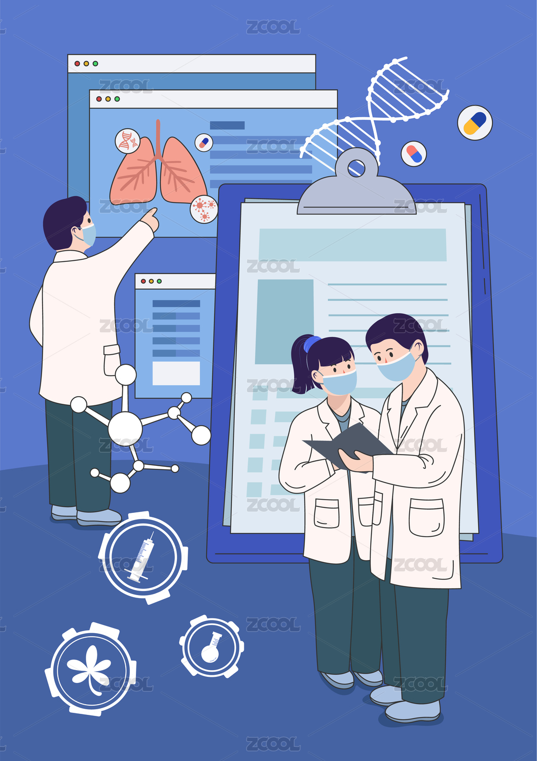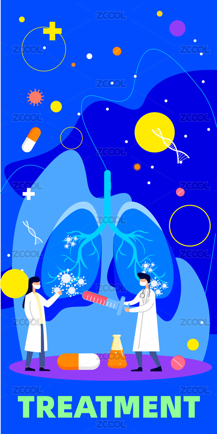 新型肺炎治療的插畫(huà),醫(yī)療圖標(biāo)設(shè)計(jì)