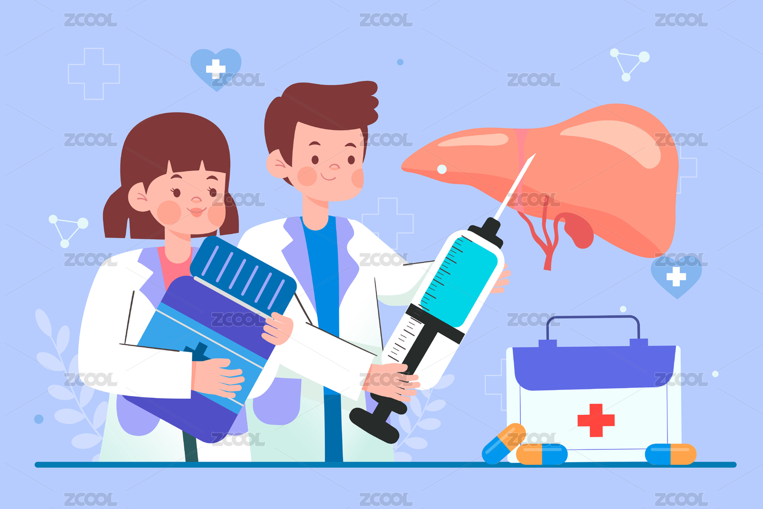 治療肝臟相關(guān)疾病矢量插畫(huà)