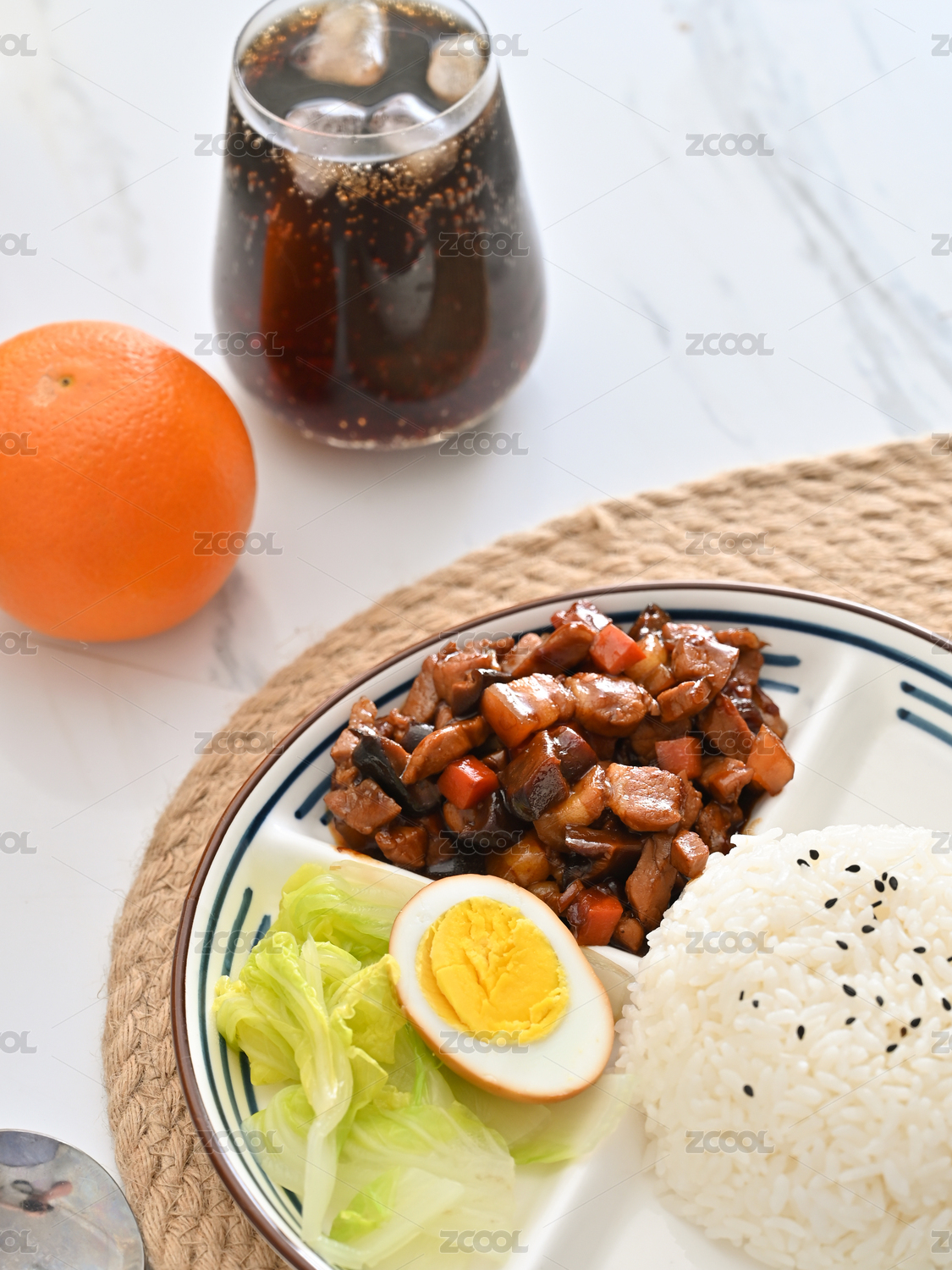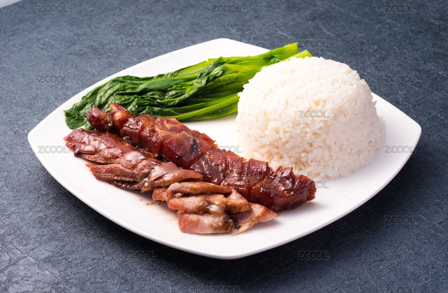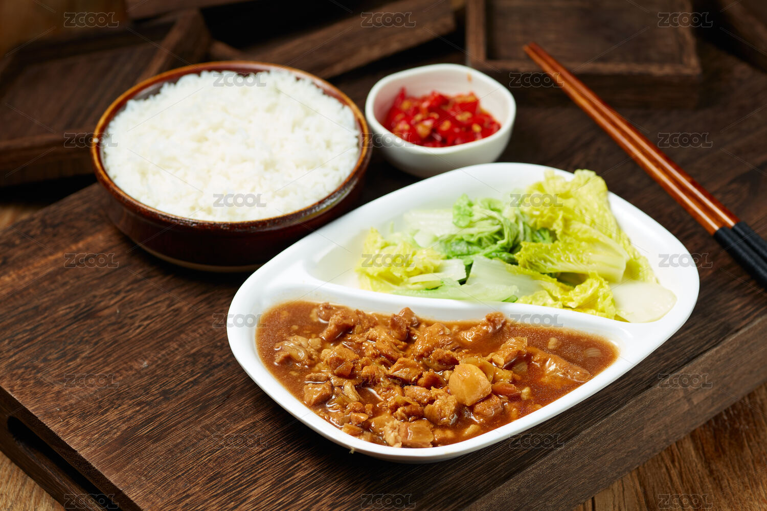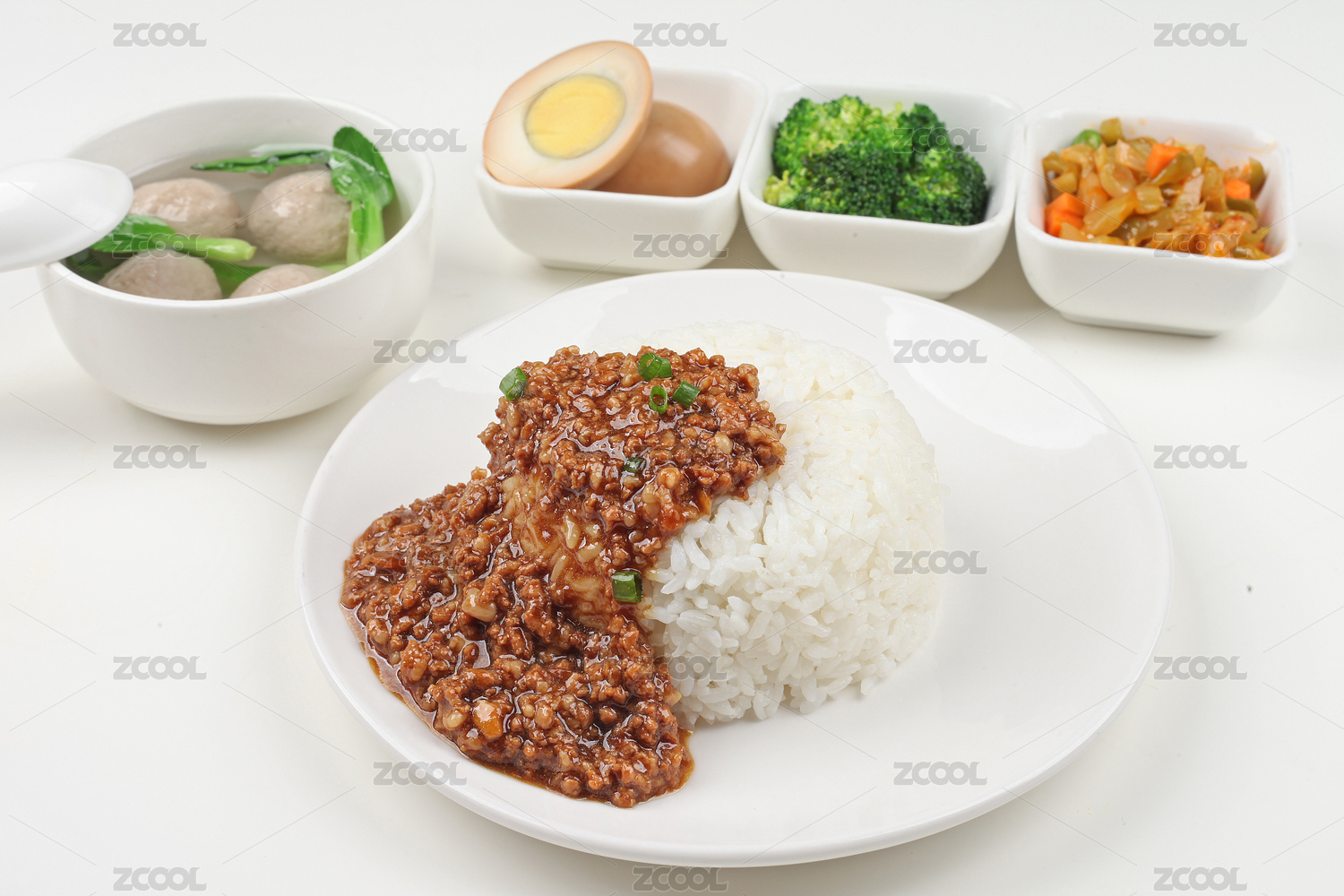 裝在白瓷盤上的一份鹵肉飯