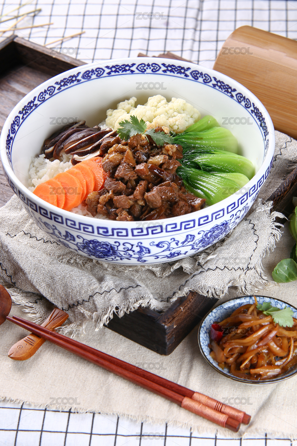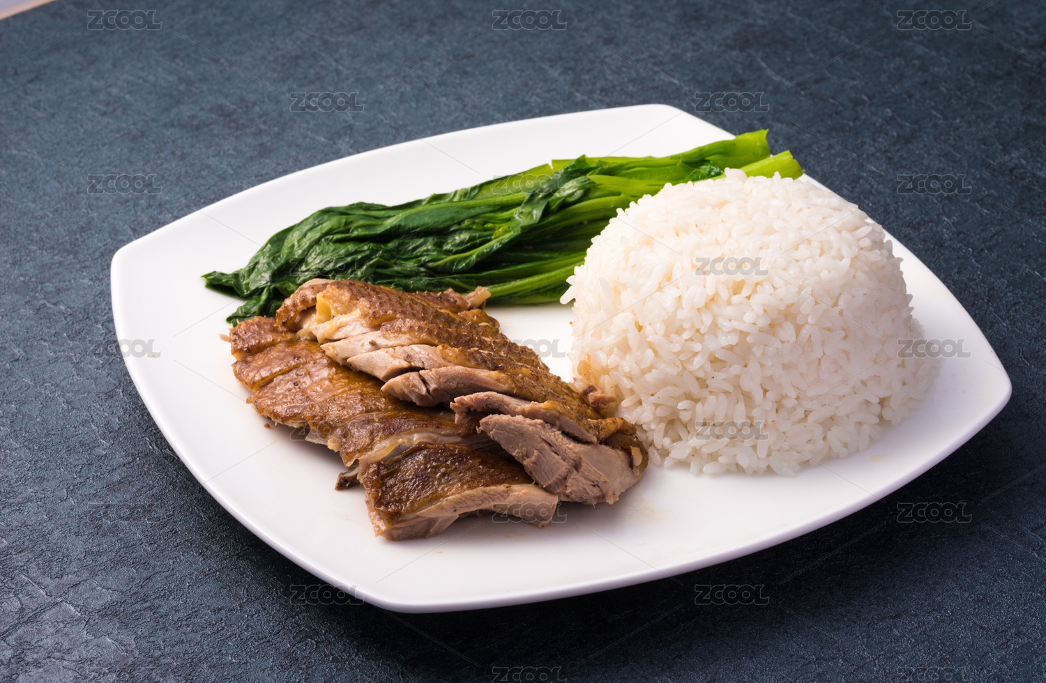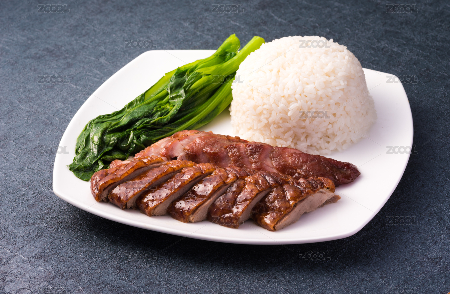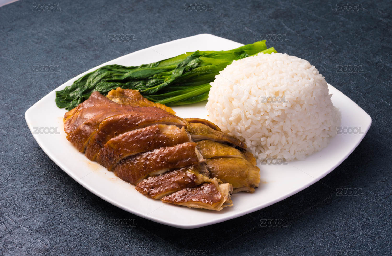 裝在白瓷盤上的一份鹵肉飯