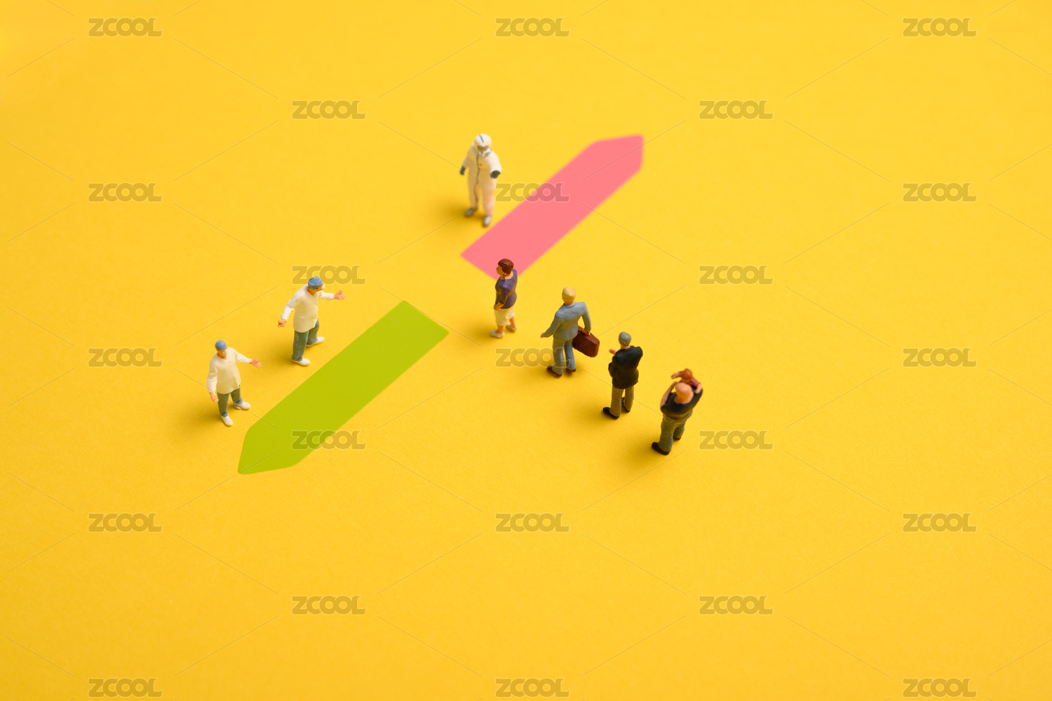 藍(lán)色背景上在景點(diǎn)人擠人的微縮小人偶