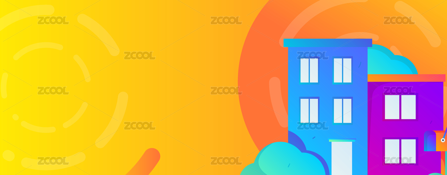 卡通房地產(chǎn)租房買(mǎi)房活動(dòng)矢量背景插畫(huà)