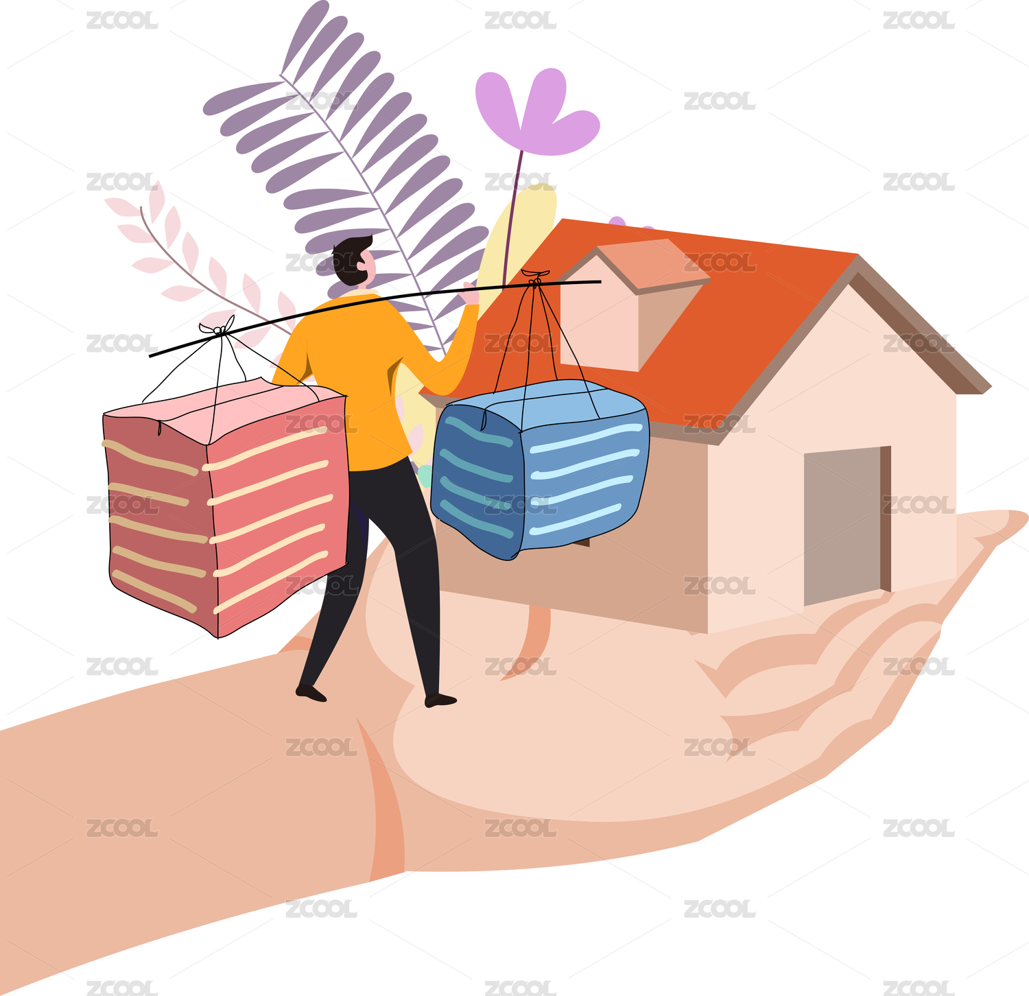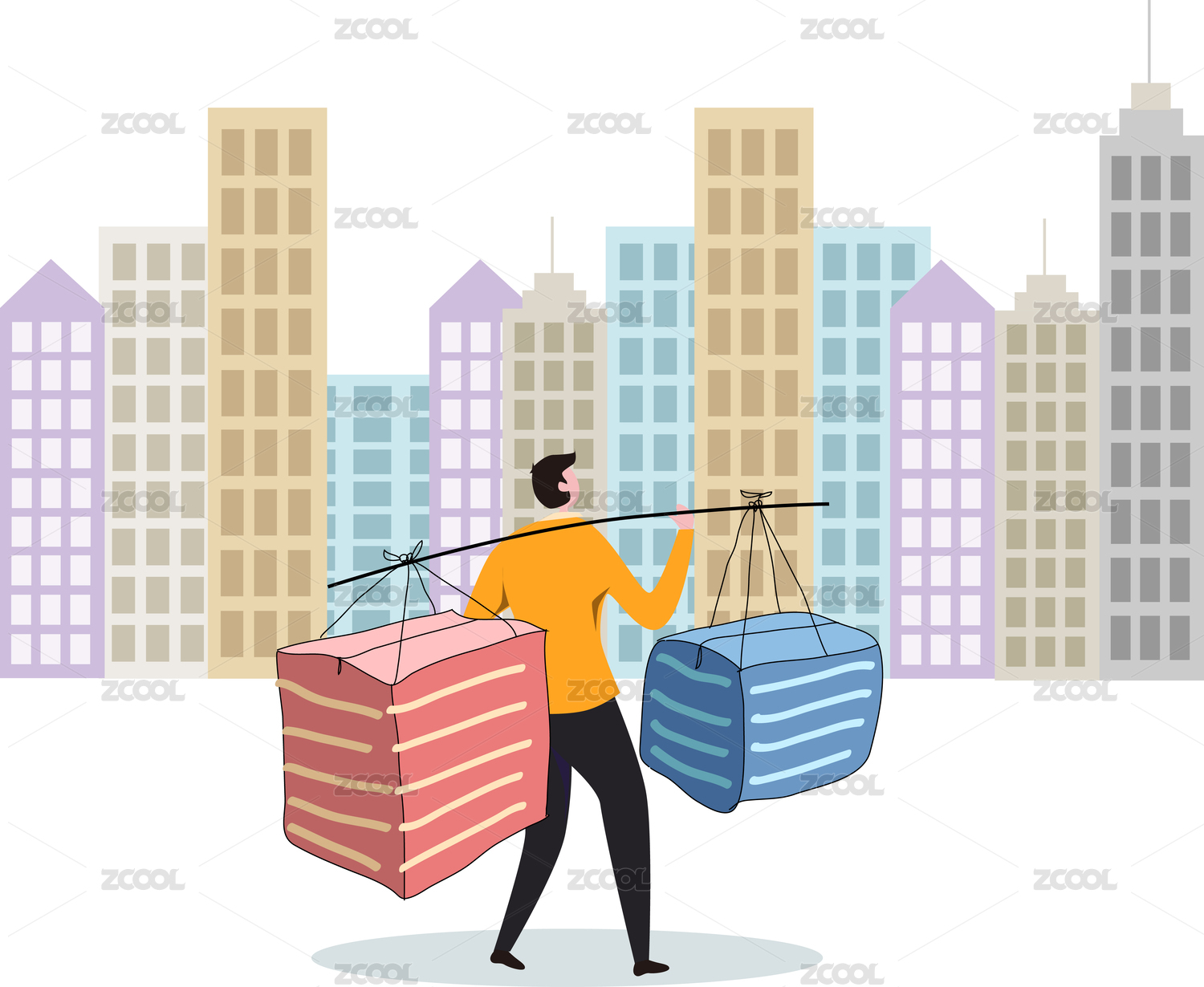外來(lái)務(wù)工人員租房需求概念插畫(huà)