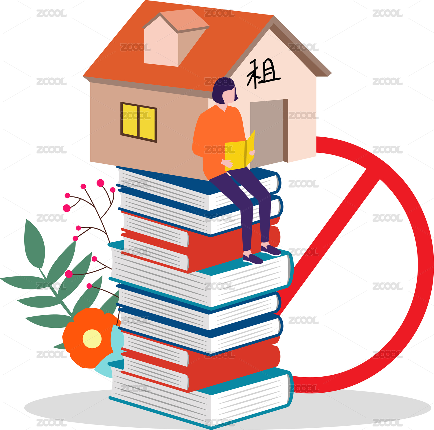 高校禁止學(xué)生校外租房概念插畫(huà)