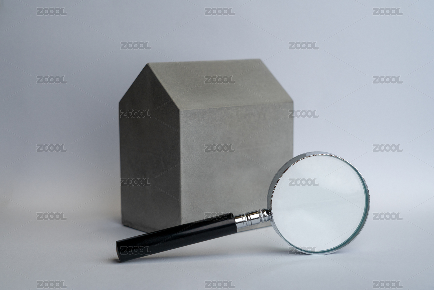 一個(gè)放大鏡放在混凝土建筑傍邊