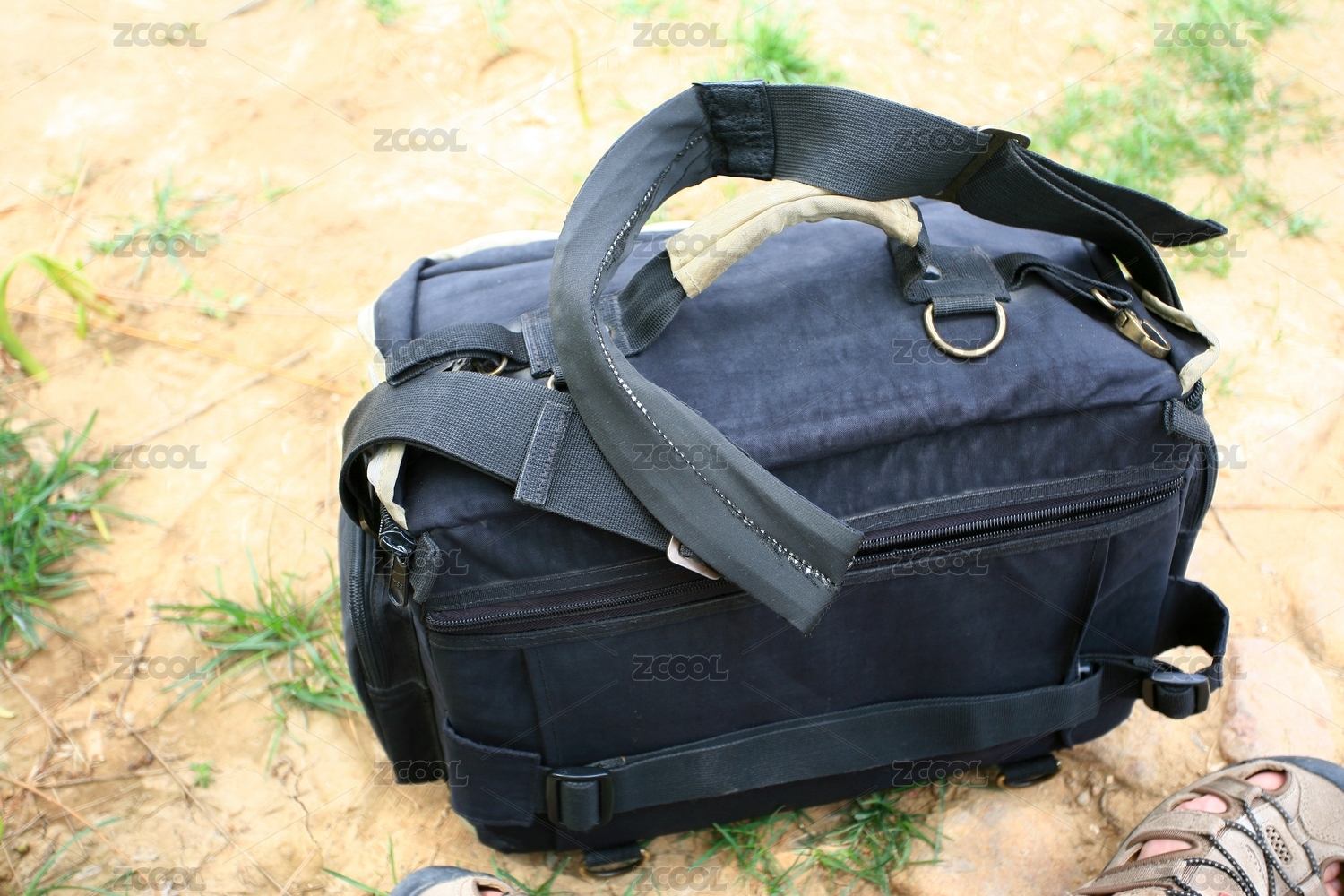 泰國甲米的蘭塔島的海岸沙灘上的相機(jī)包