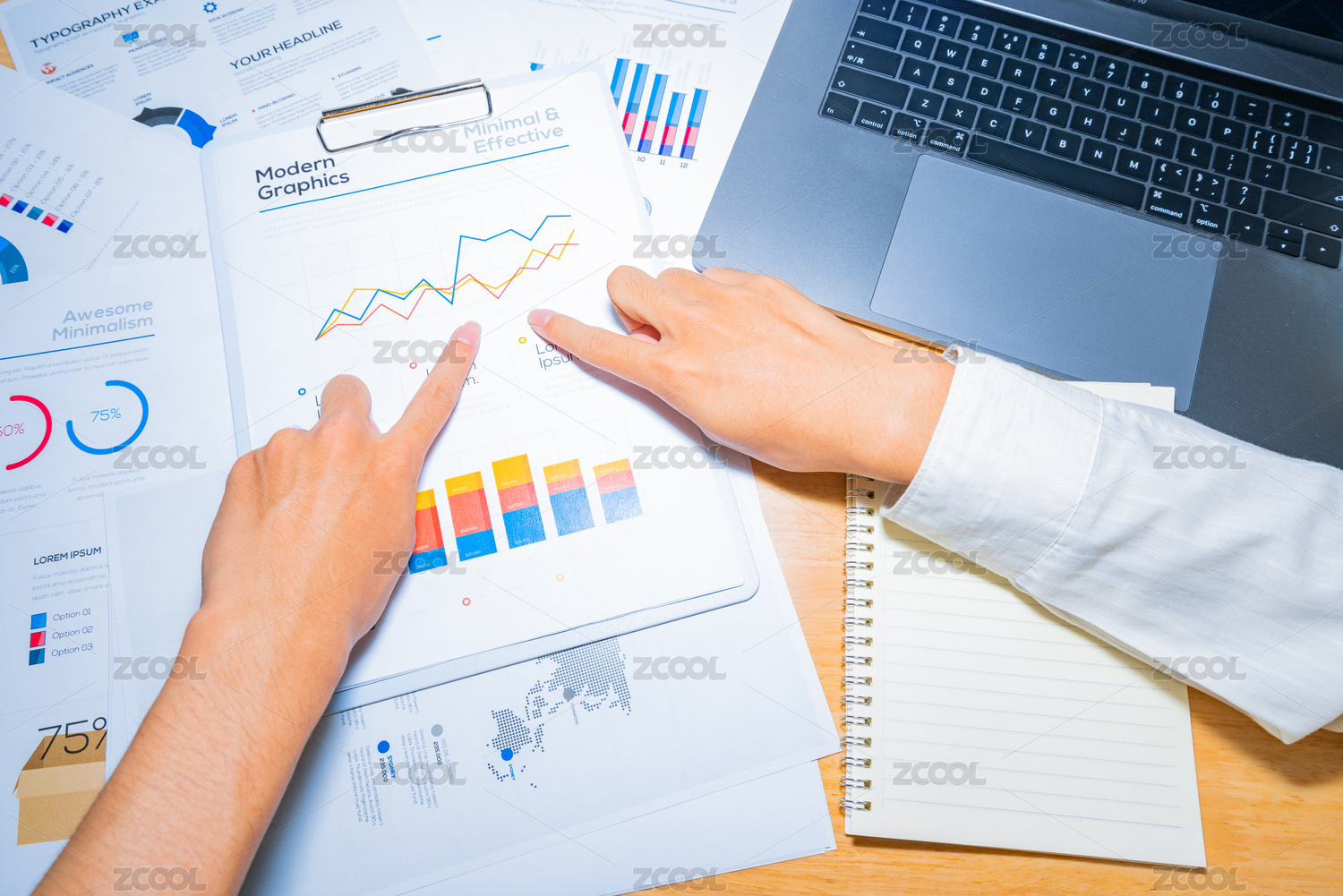 商務(wù)金融人士正在辦公分析記錄計(jì)算報(bào)表圖表年終報(bào)告數(shù)據(jù)概念
