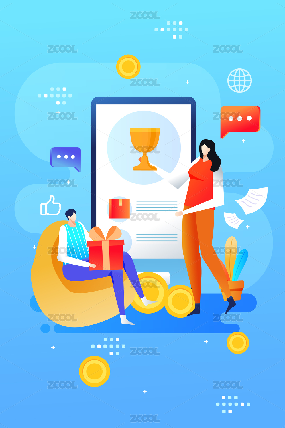 卡通互聯(lián)網(wǎng)金融年終獎(jiǎng)禮包背景矢量插畫