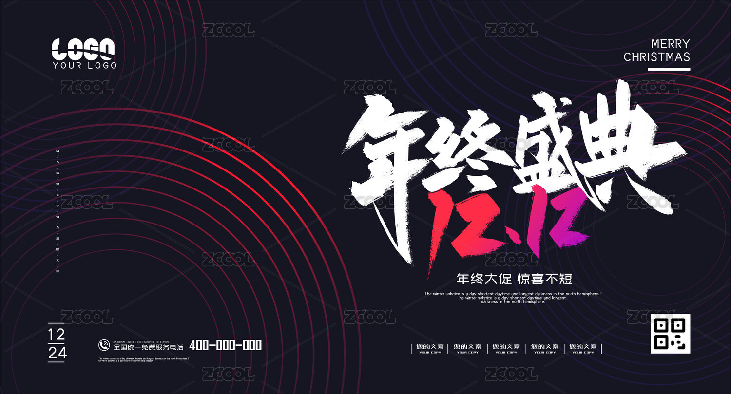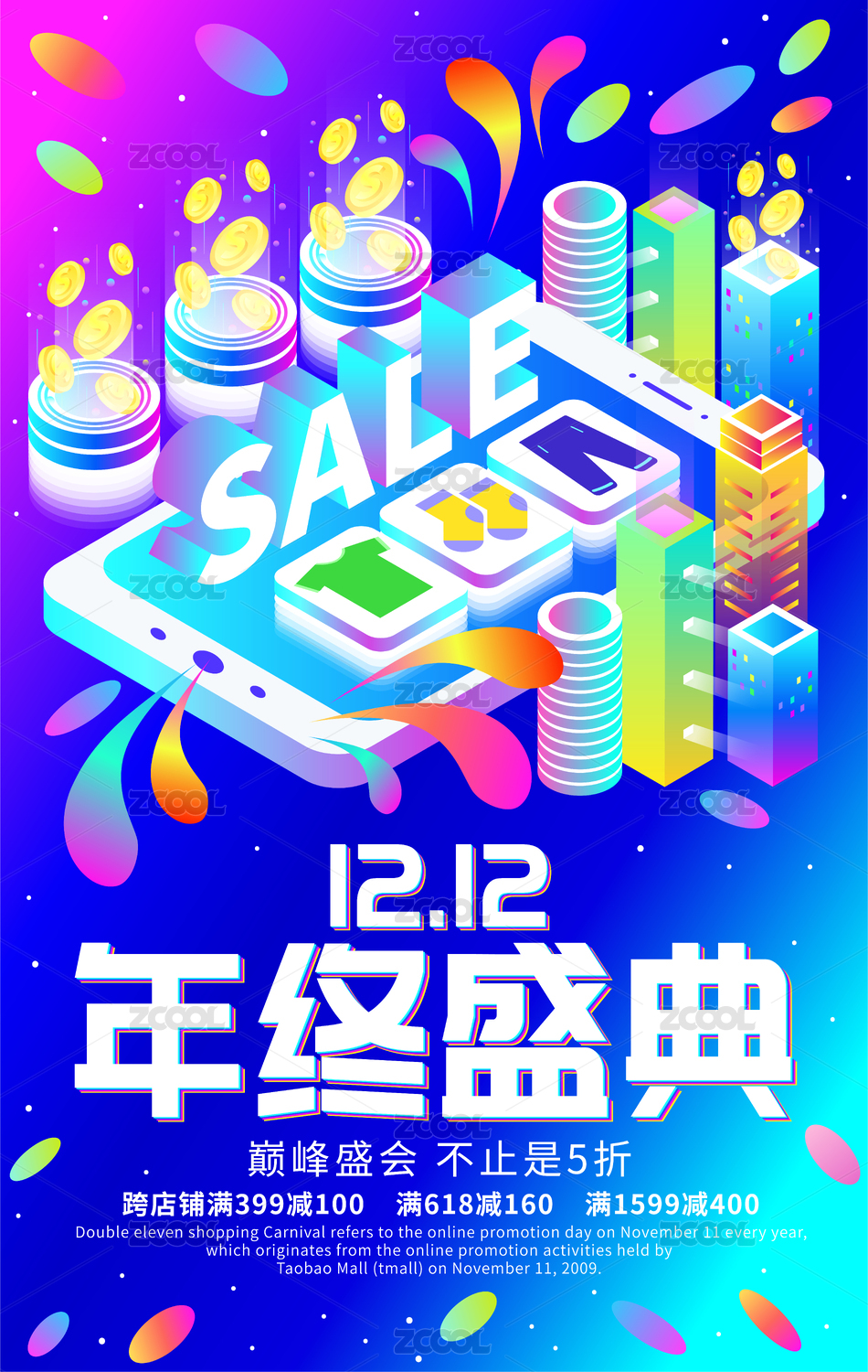 年終盛典雙12炫彩時(shí)尚藍(lán)紫漸變海報(bào)