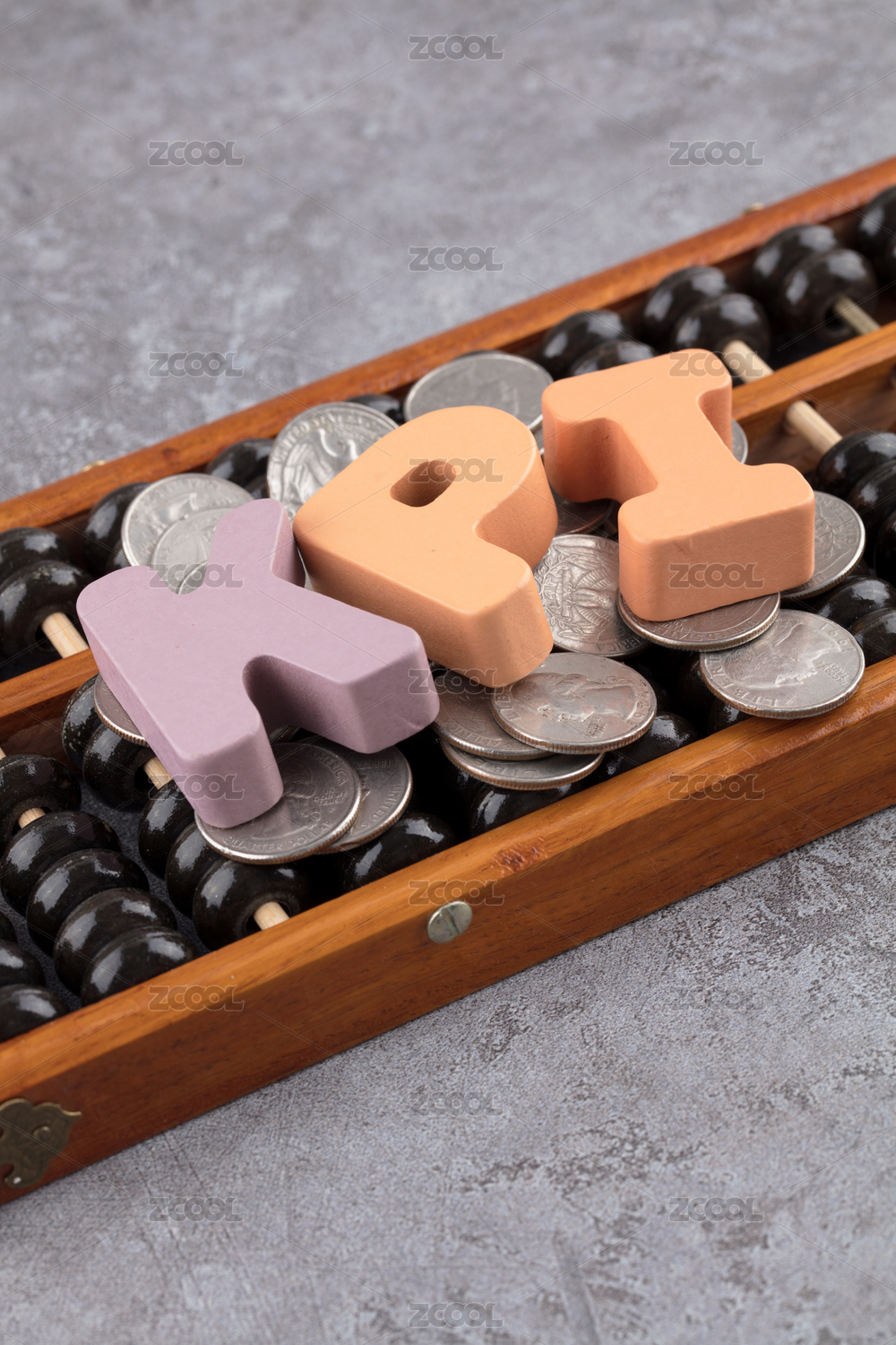 算珠上的硬幣和KPI字母