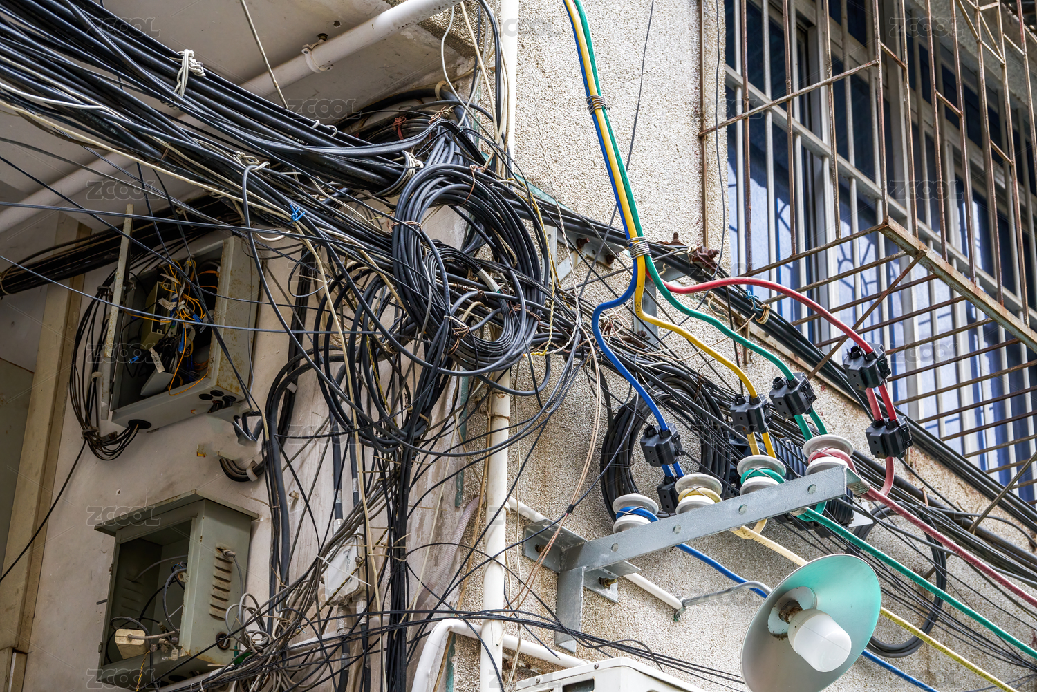 中國老舊住宅小區(qū)里雜亂的電線輸電線路