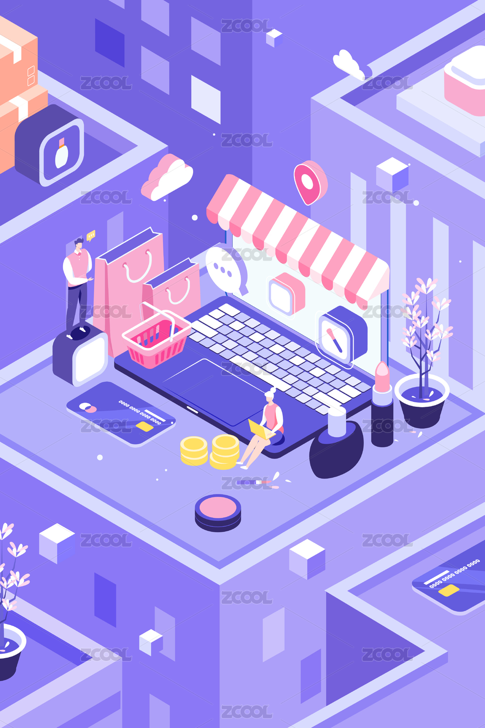 2.5d電商在線購物矢量插畫