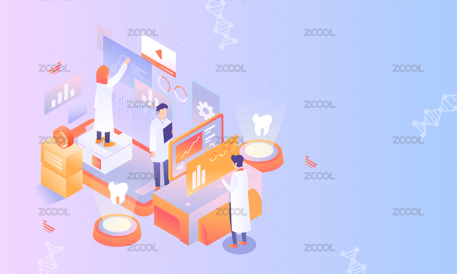 2.5D等距世界愛牙日口腔健康醫(yī)療背景插畫